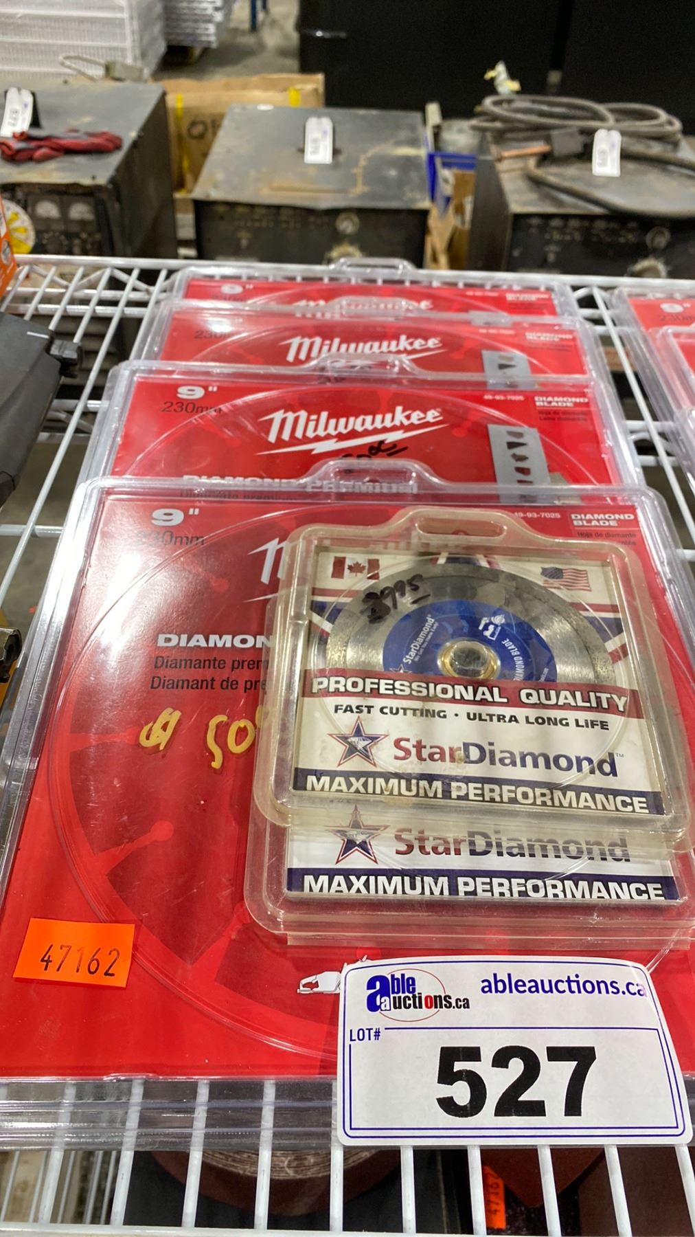GROUP OF 4 MILWAUKEE 9" DIAMOND PREMIUM SAW BLADES & 2 STAR DIAMOND 4 1/2" BLADES