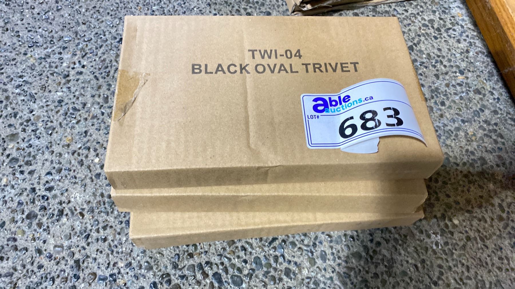 GROUP OF 4 OVAL CAST IRON TRIVETS RETAIL $340