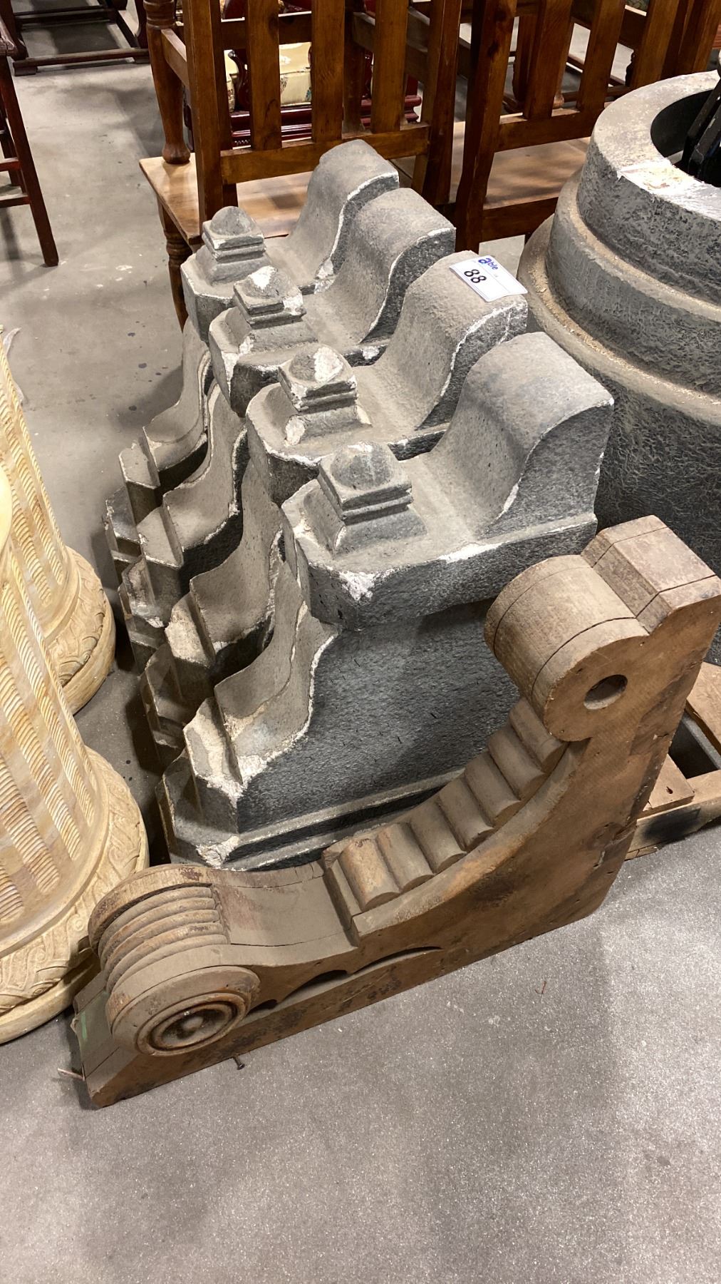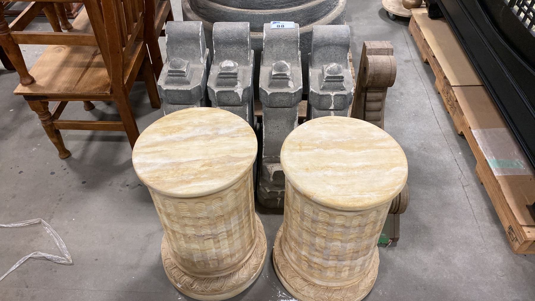 GROUP OF 4 PROP STYROFOAM WALL SCONCES, 1 SOLID WOOD WALL SCONCE & 2 COLUMN STYLE PLANT STANDS