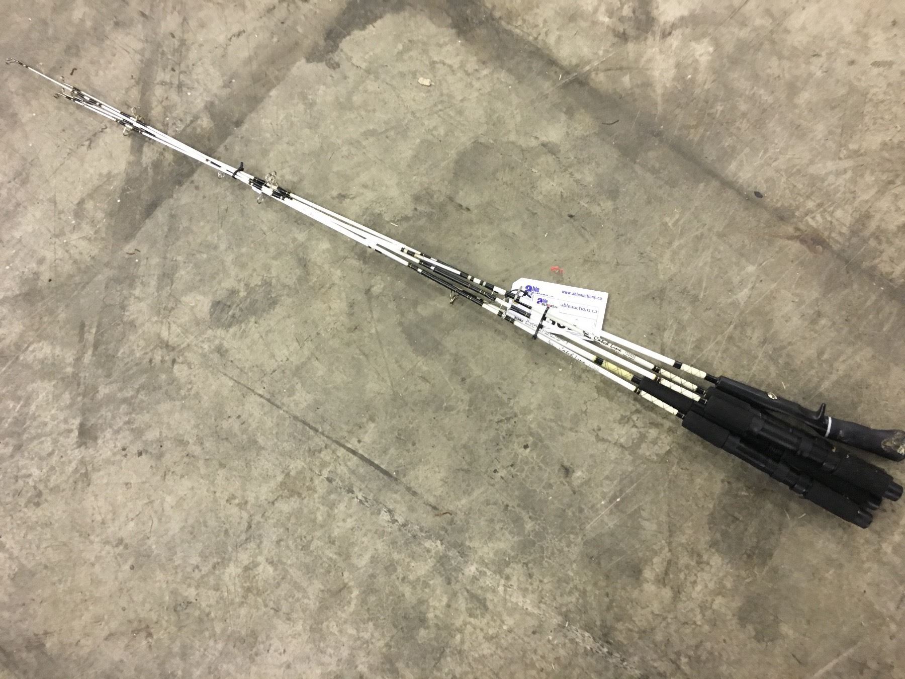 GROUP OF 5 ASSORTED FISHING RODS OF VARIOUS LENGTHS AND TYPES