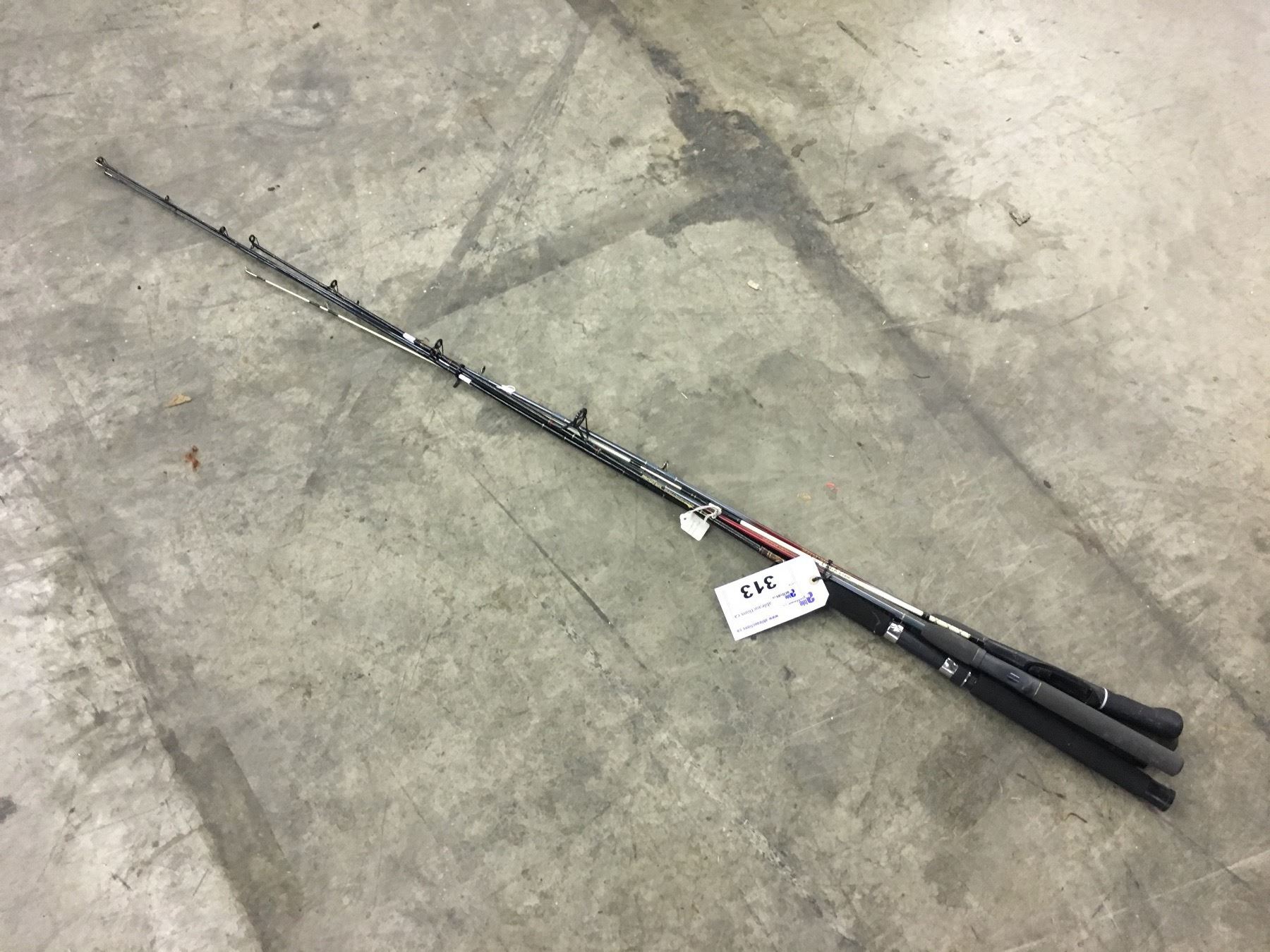 GROUP OF 5 ASSORTED FISHING RODS OF VARIOUS LENGTHS AND TYPES