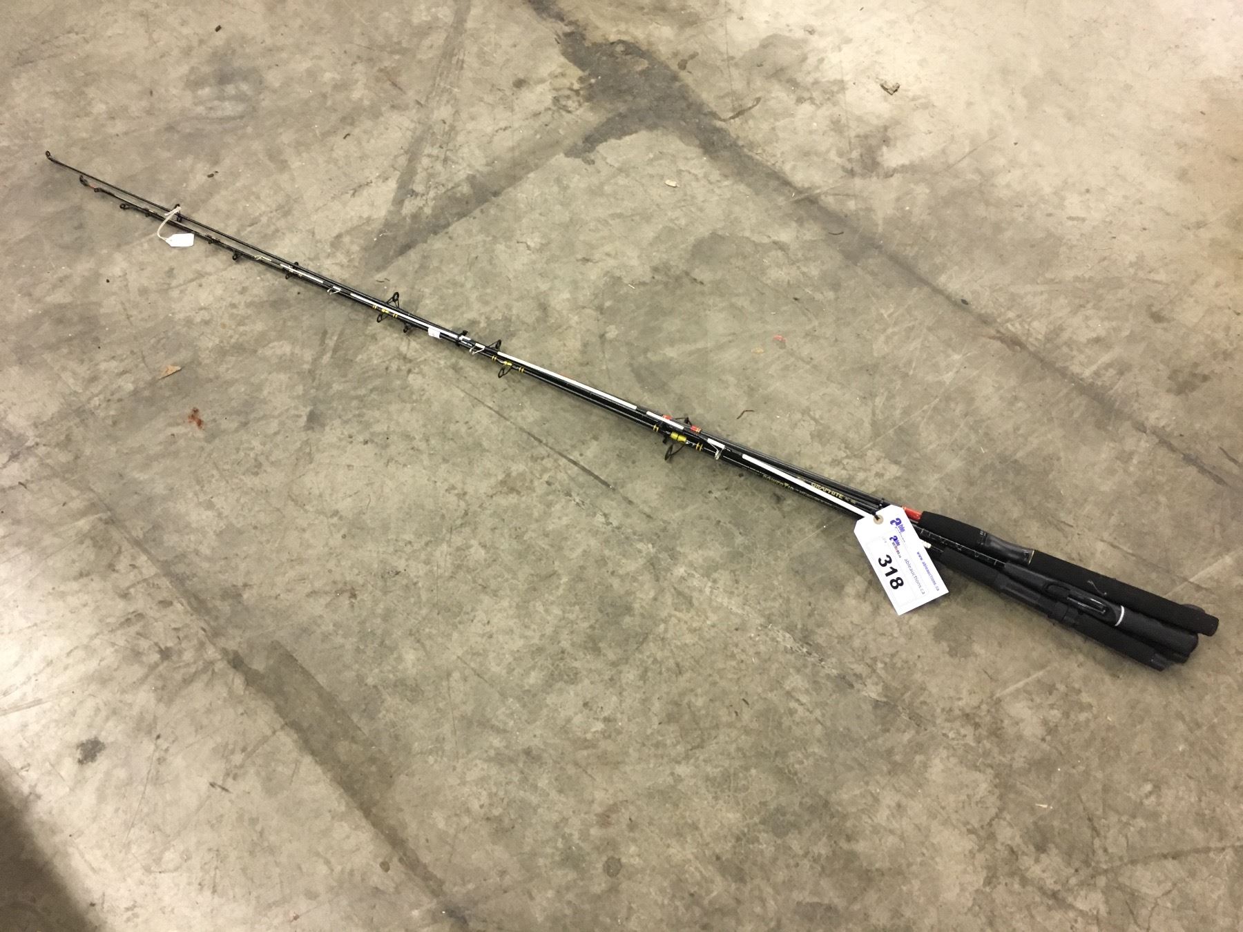 GROUP OF 5 ASSORTED FISHING RODS OF VARIOUS LENGTHS AND TYPES