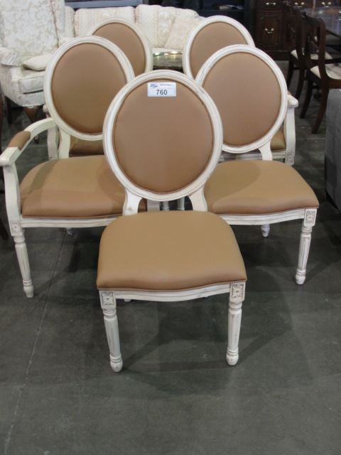 GROUP OF 5 BEIGE LEATHER UPHOLSTERED DINING CHAIRS