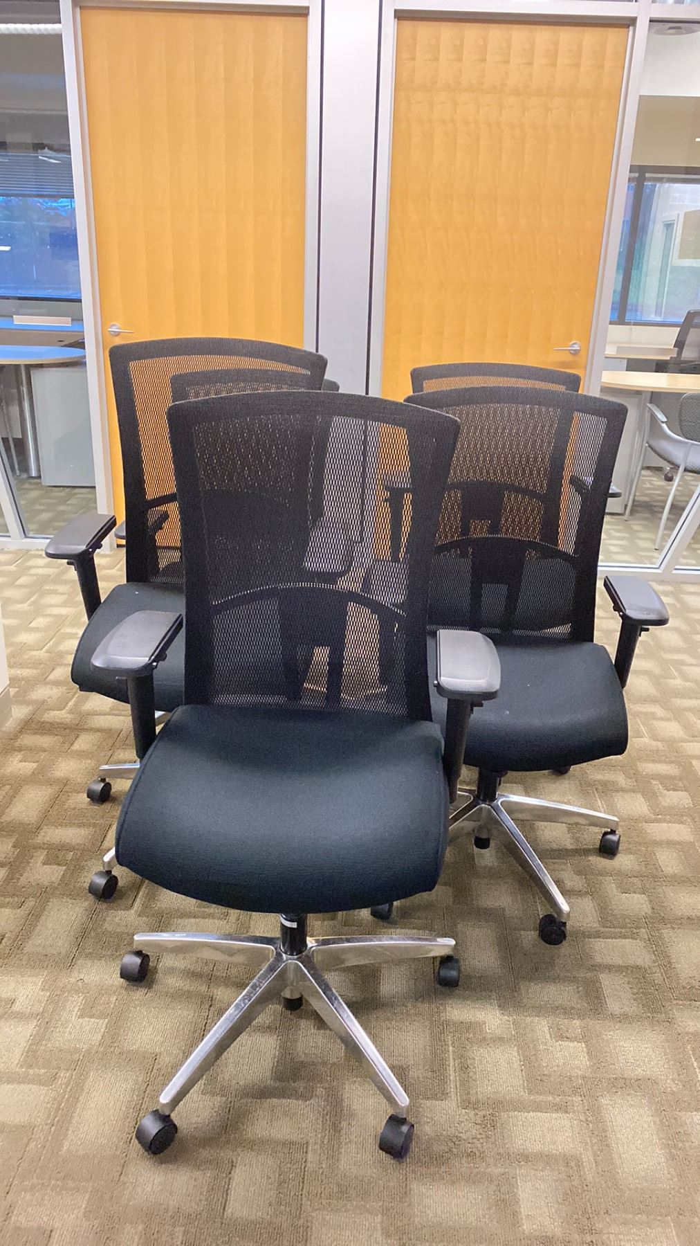 GROUP OF 5 BLACK & CHROME WITH MESH BACK ADJUSTABLE OFFICE CHAIRS