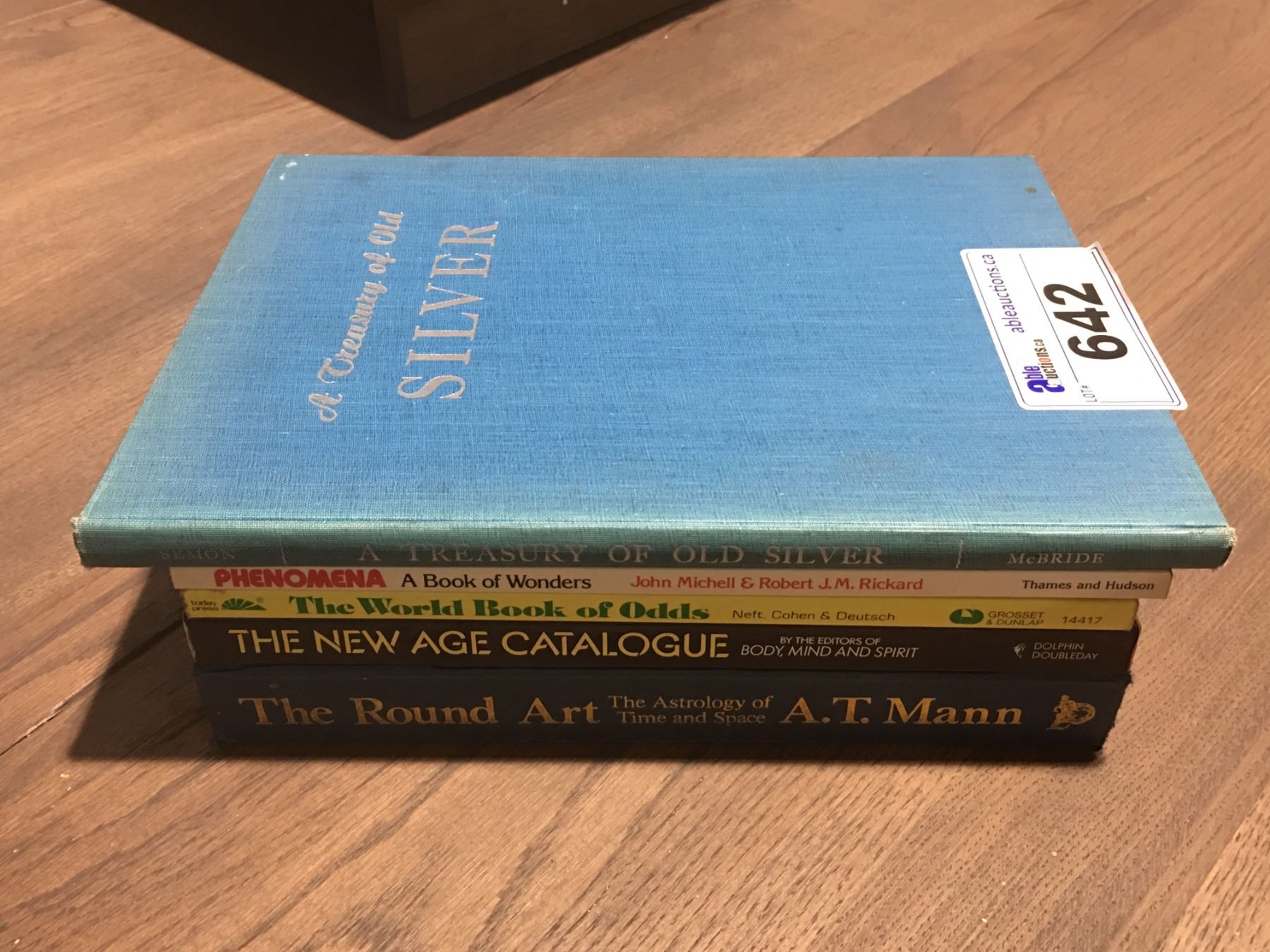 GROUP OF 5 BOOKS - THE ROUND ART/NEW AGE CATALOG/WORLD BOOK OF ODDS/PHENOMENA & A TREASURE OF OLD SILVER