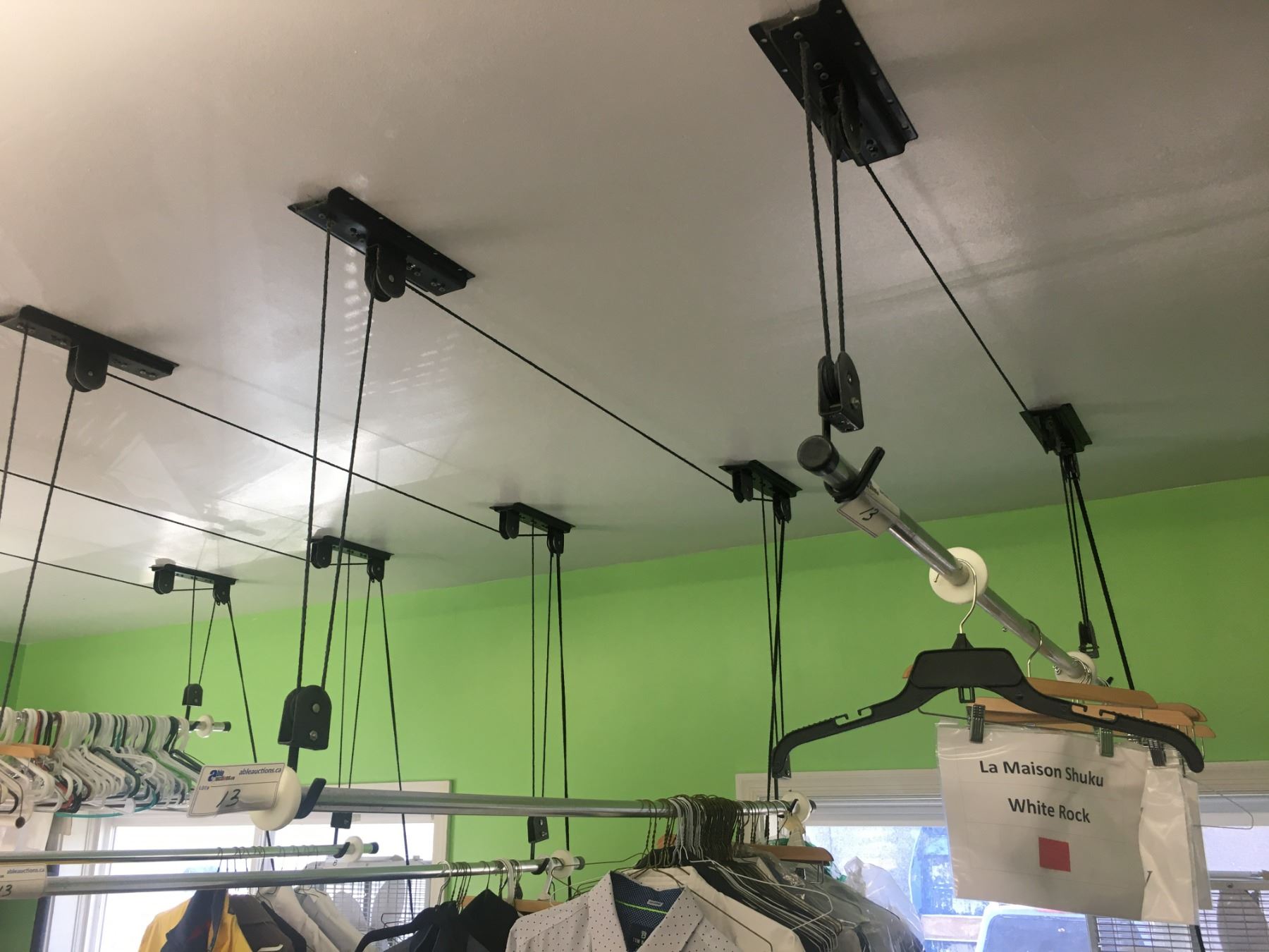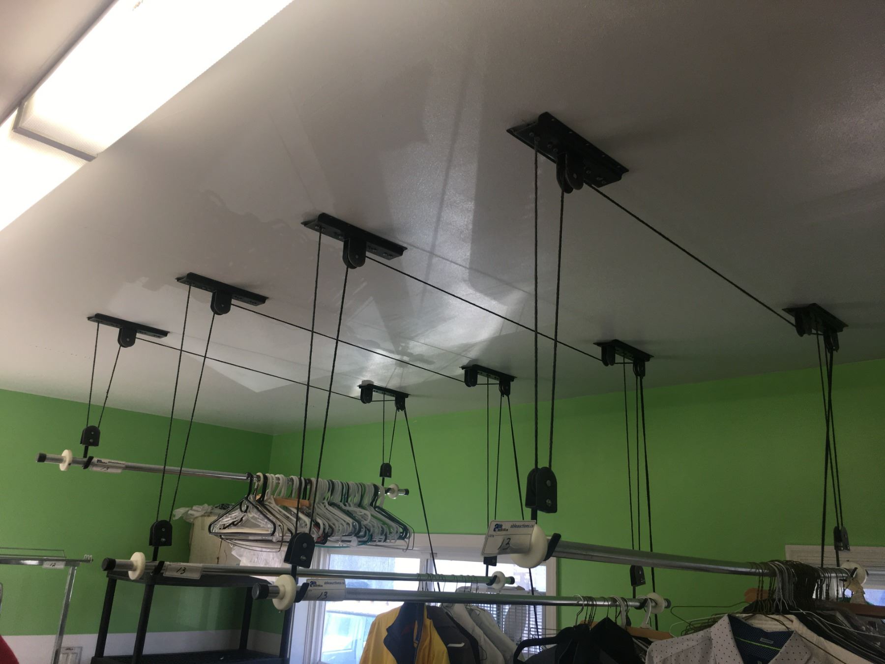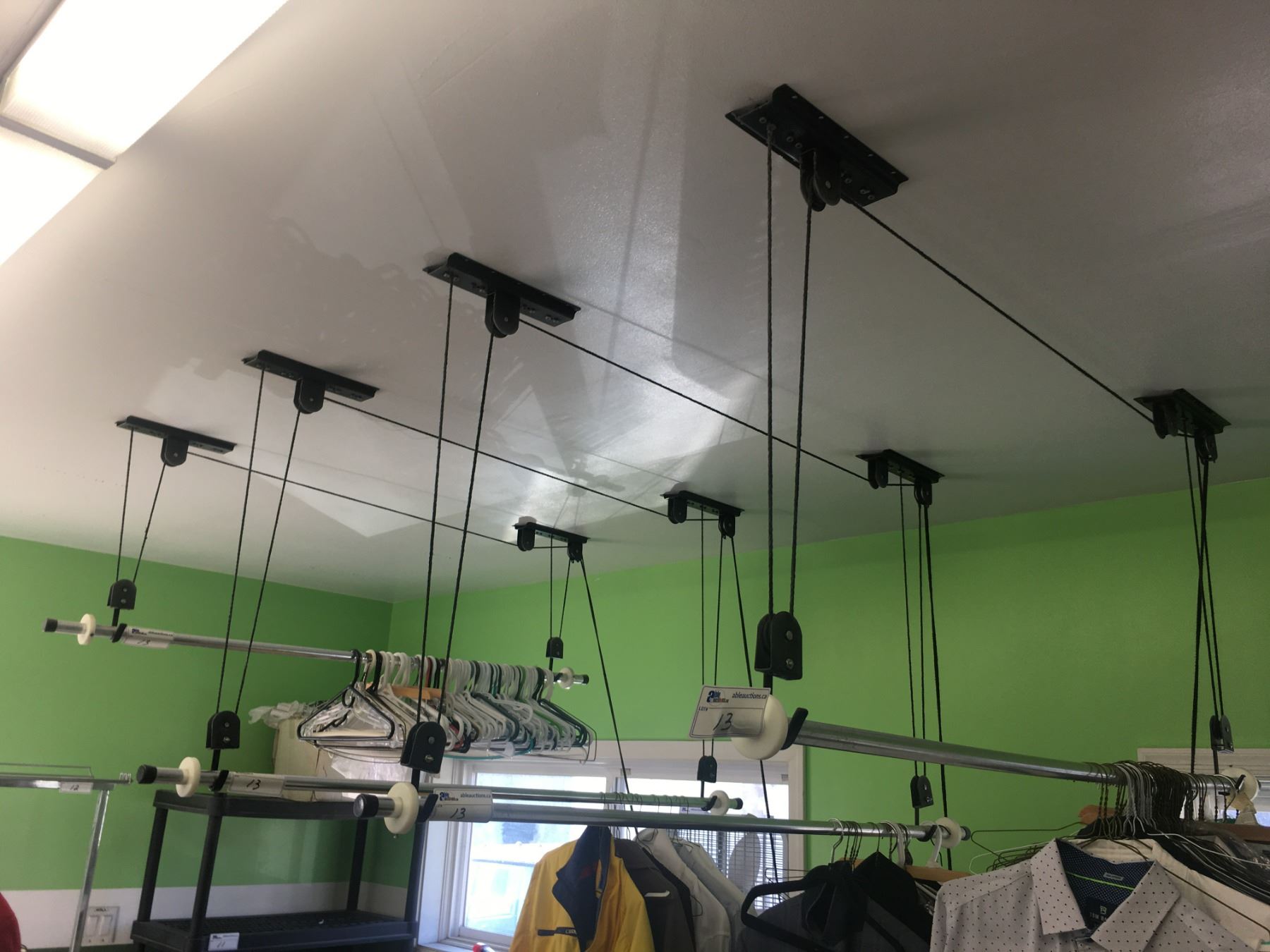 GROUP OF 5 CLOTHES HANGERS ON PULLEY SYSTEM