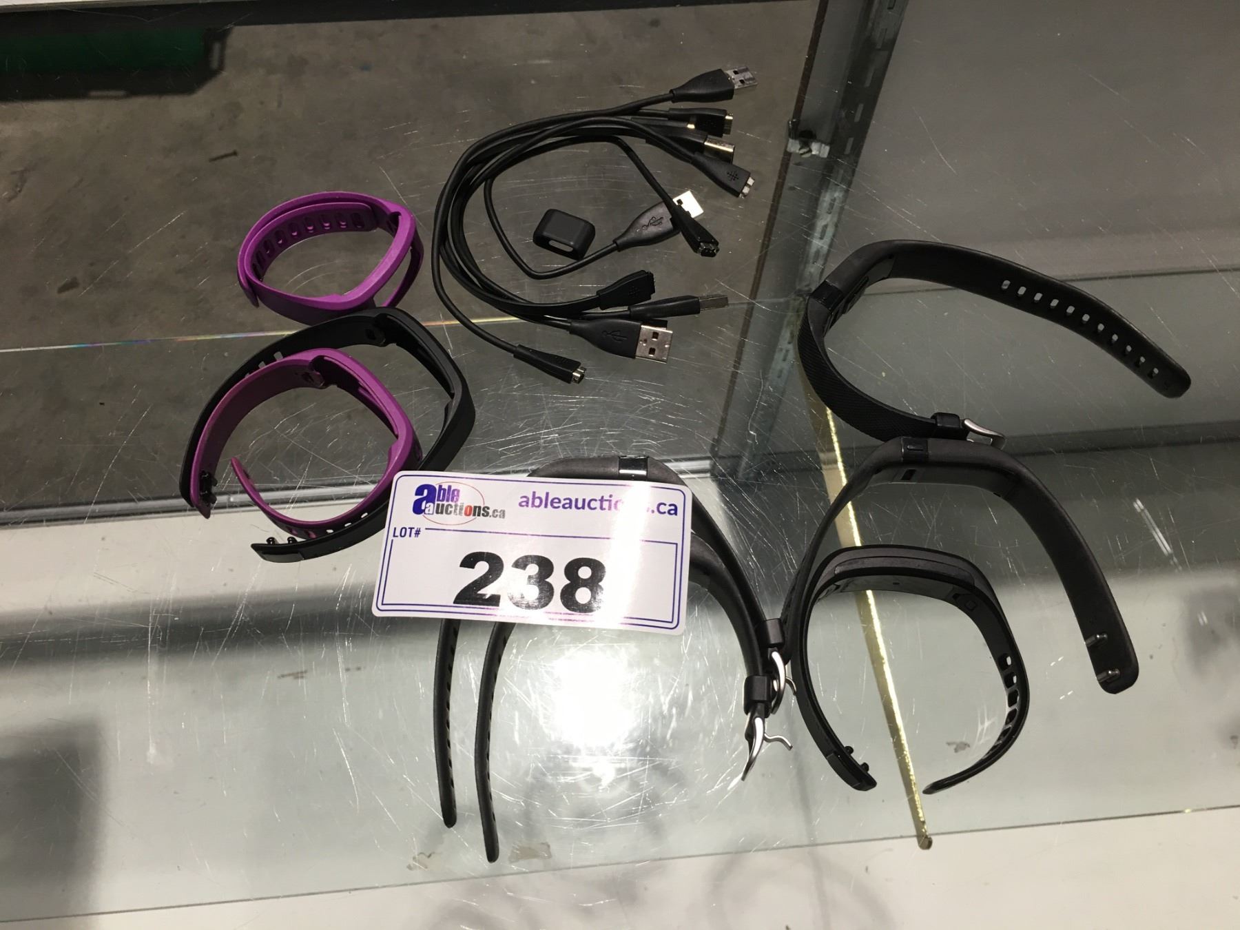 GROUP OF 5 FITBITS WITH CHARGING CABLES & EXTRA BANDS
