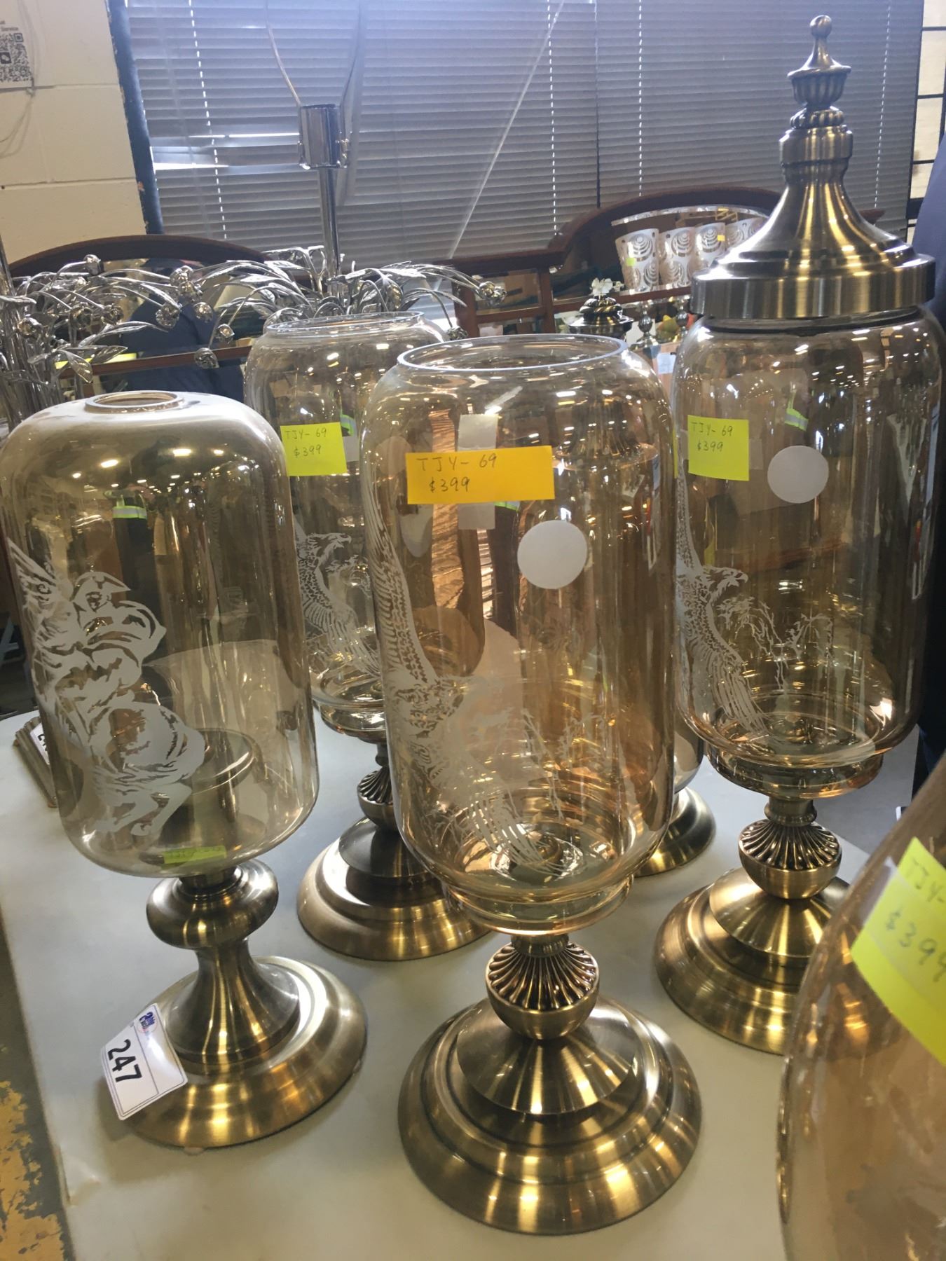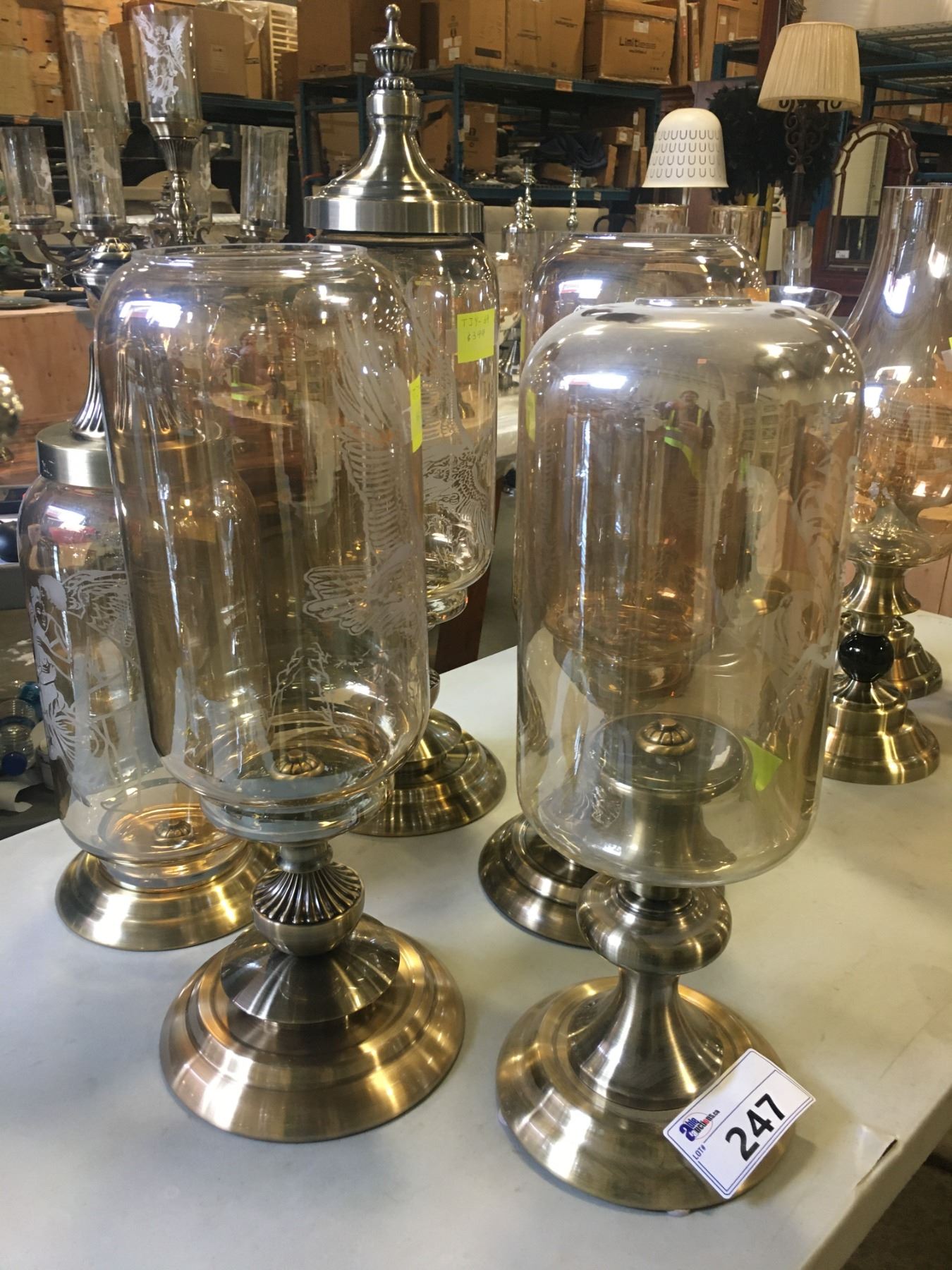 GROUP OF 5 GLASS & BRASS FINISH DRIED FLOWER VASES