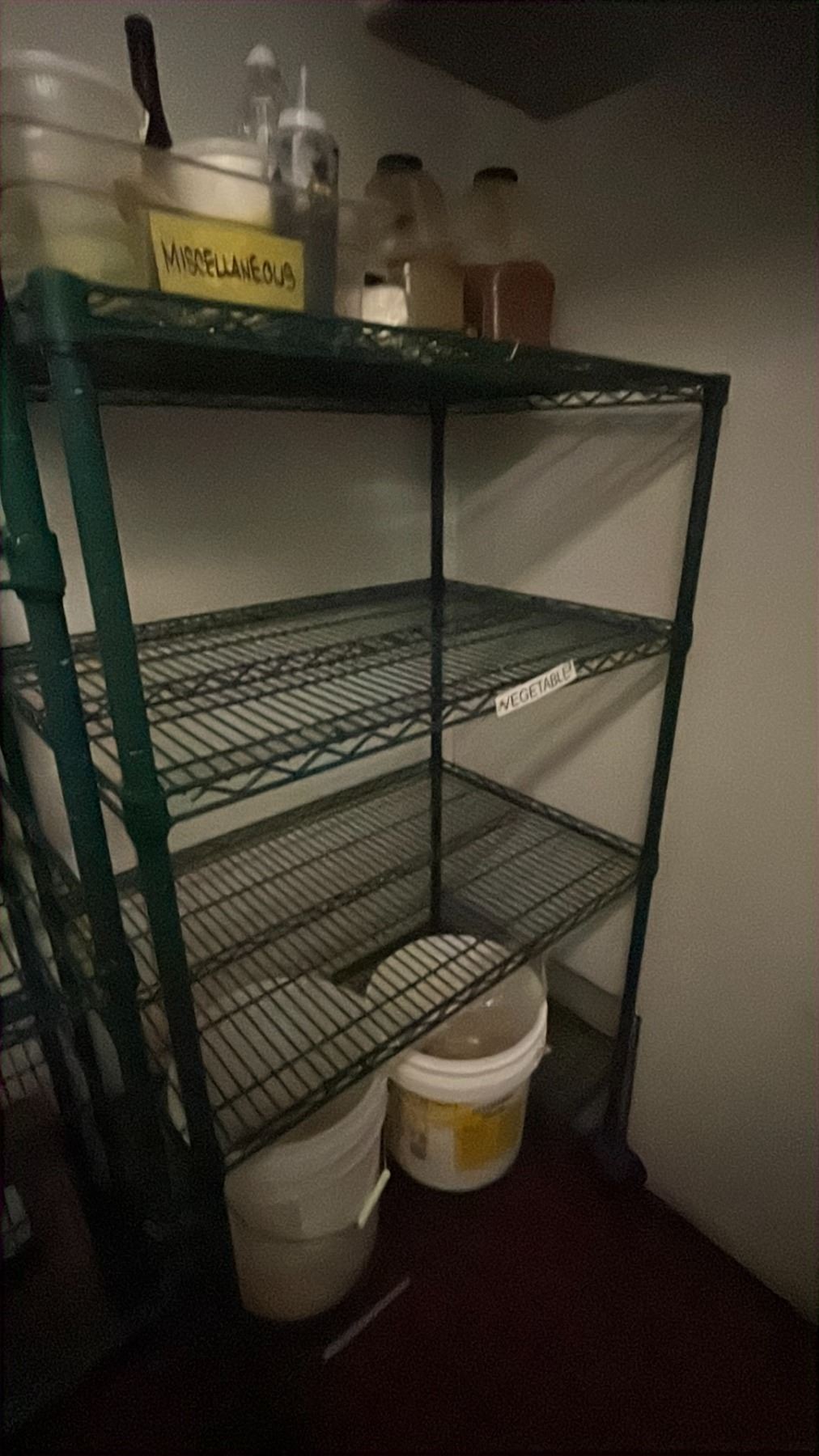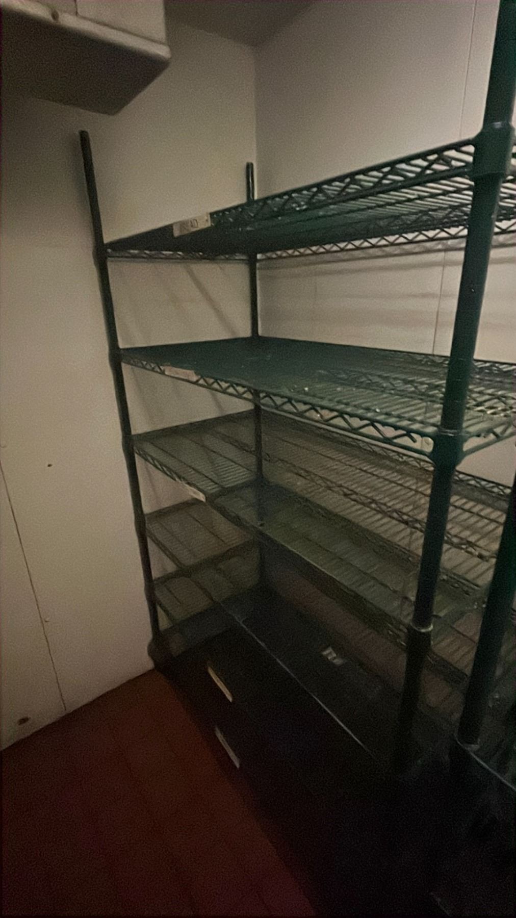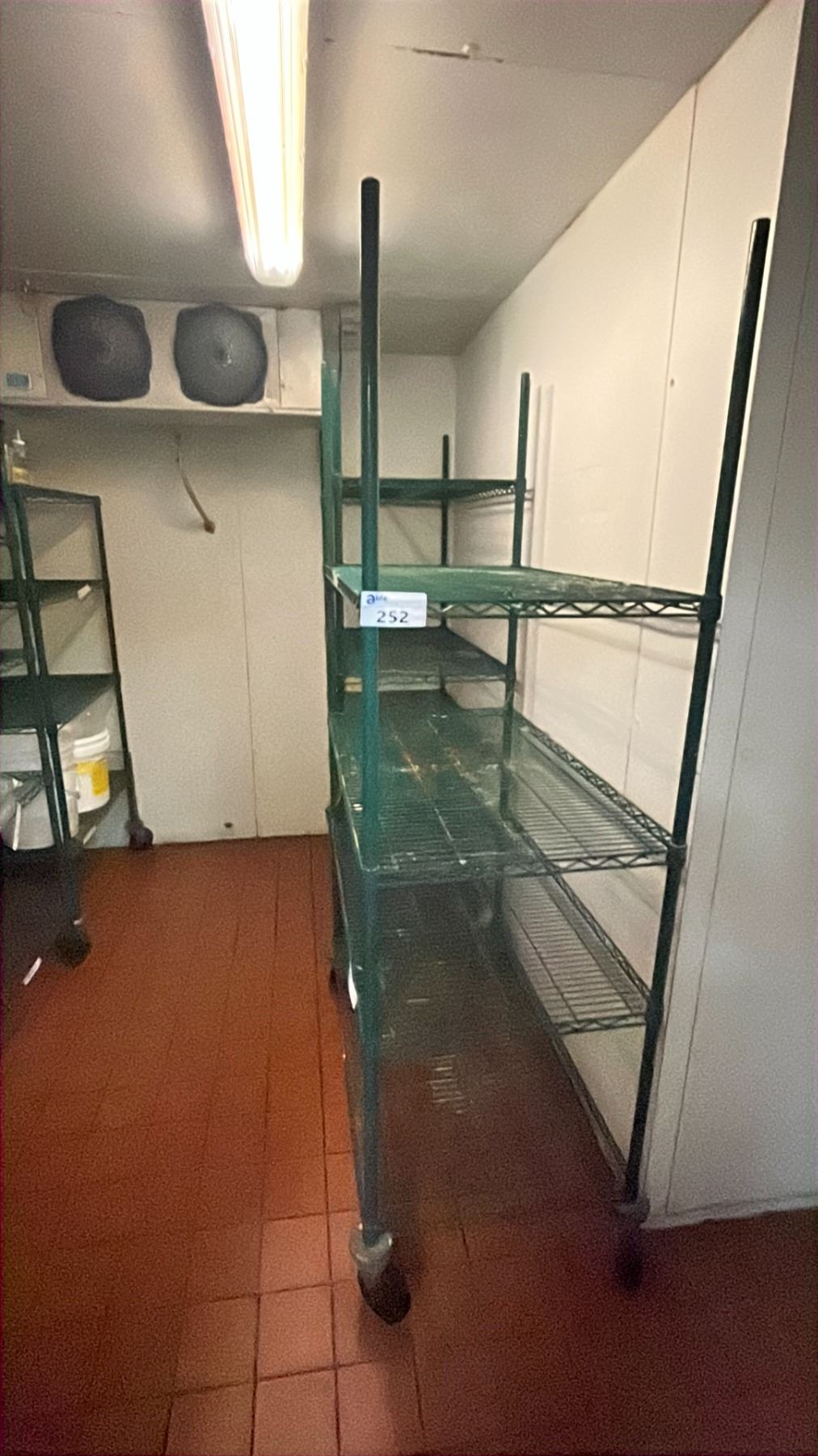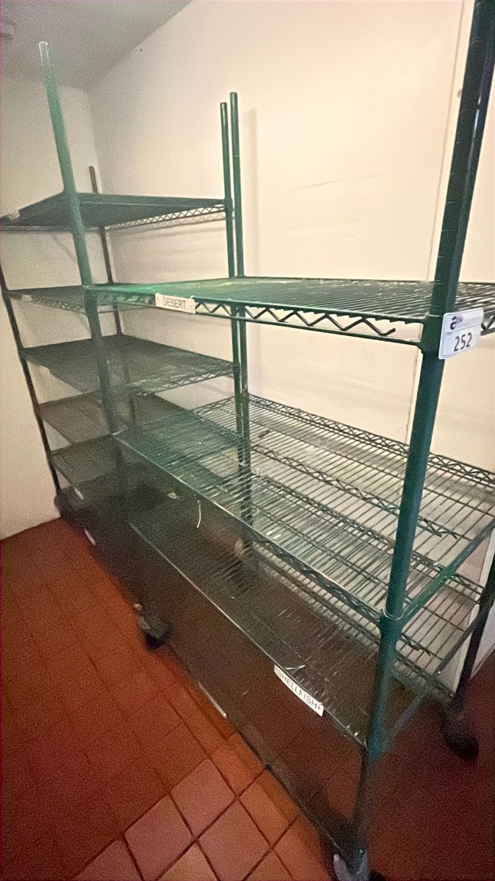 GROUP OF 5 GREEN MOBILE SHELVING RACKS
