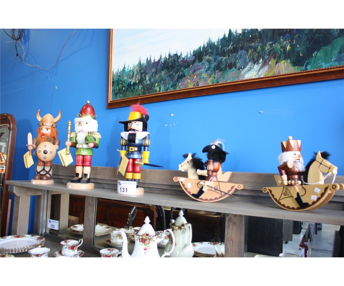 GROUP OF 5 HAND CRAFTED CHRISTIAN CULBRICHT WOODEN NUT CRACKERS, GERMANY