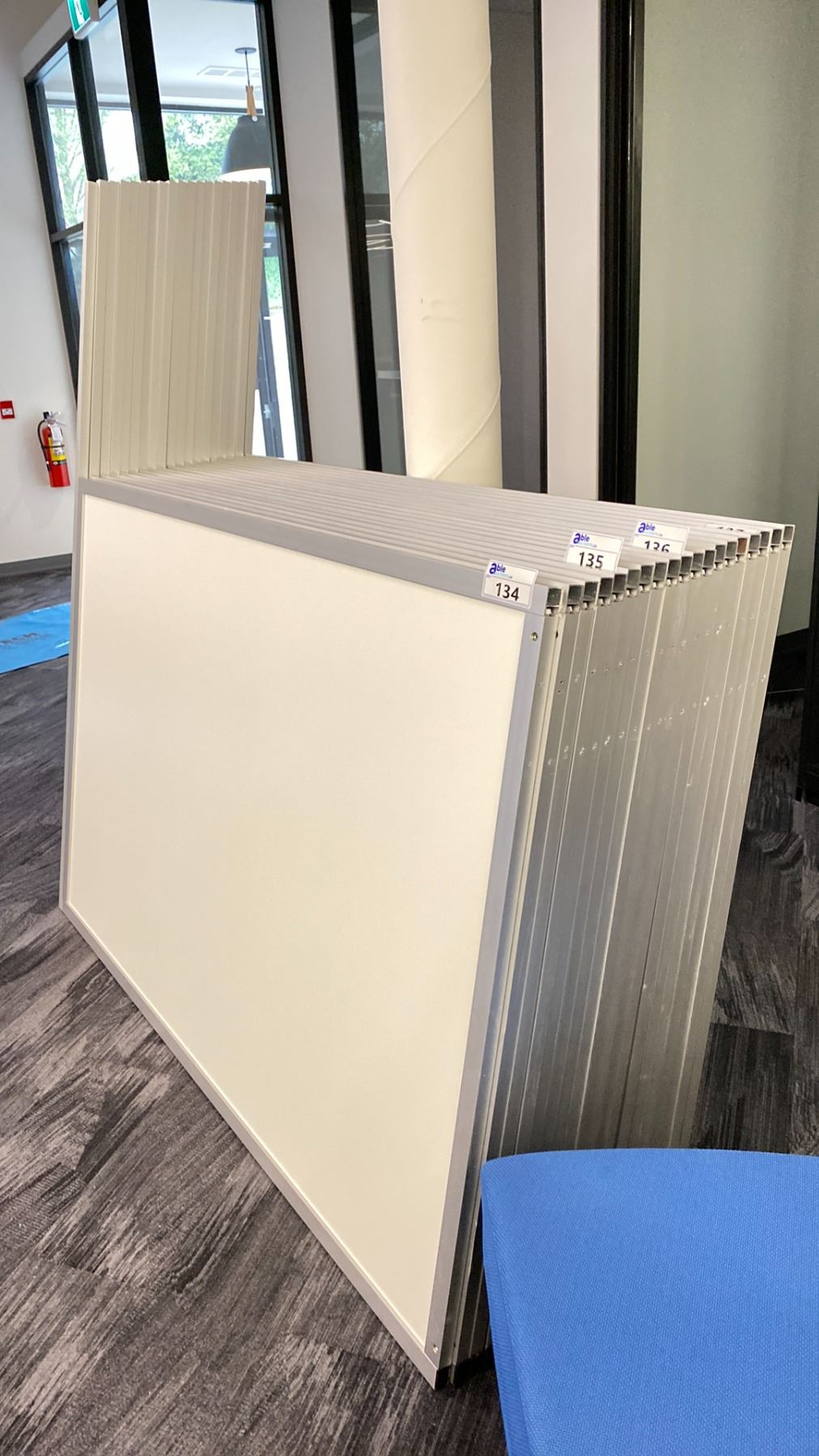 GROUP OF 5 LARGE WHITE W/ALUMINIUM FRAMES OFFICE PANELS - 6FT ACROSS X 4FT WIDE WITH 2FT ARM