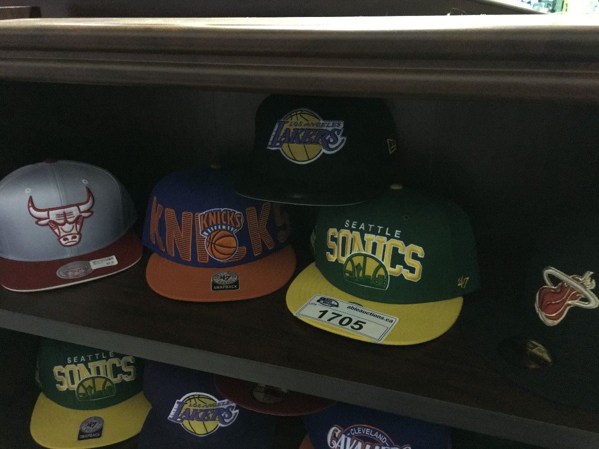 GROUP OF 5 MBA TEAM BALL CAPS HEAT, SONICS, LAKERS, KNICKS,BULLS