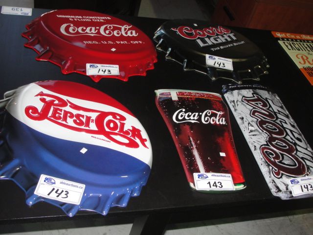 GROUP OF 5 NOSTALGIC TIN ADVERTISEMENT SIGNS; PEPSI COLA, COCA COLA, COORS LIGHT