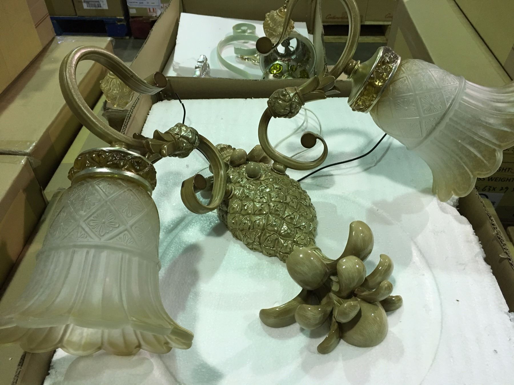 GROUP OF 5 PINEAPPLE DESIGN DOUBLE LIGHT WALL SCONCES