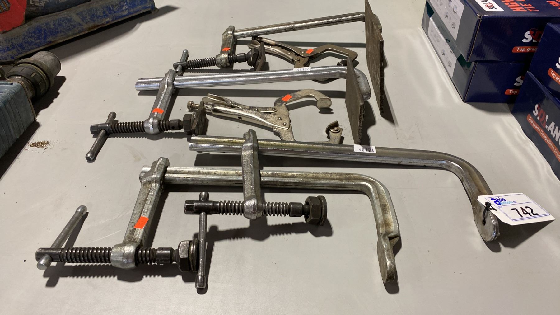 GROUP OF 6 ASSORTED HEAVY DUTY WELDING CLAMPS