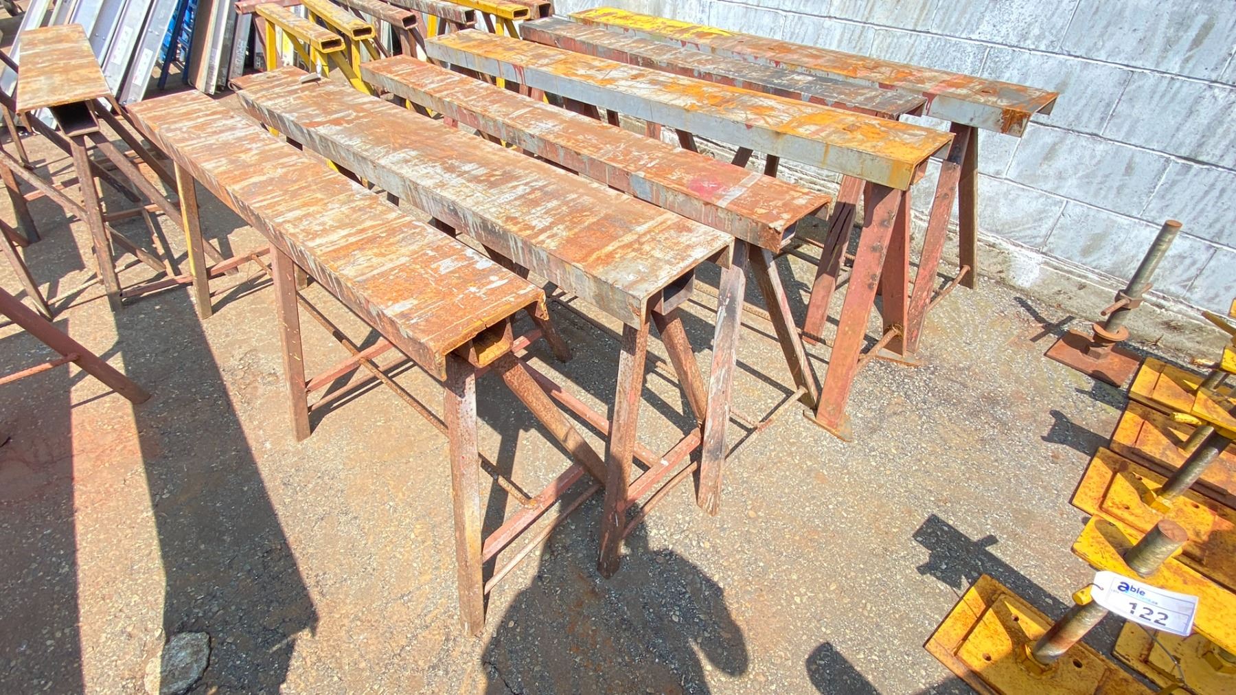 GROUP OF 6 CUSTOM BUILT METAL SAW HORSES APPROX 5.5'L X 2.5'H