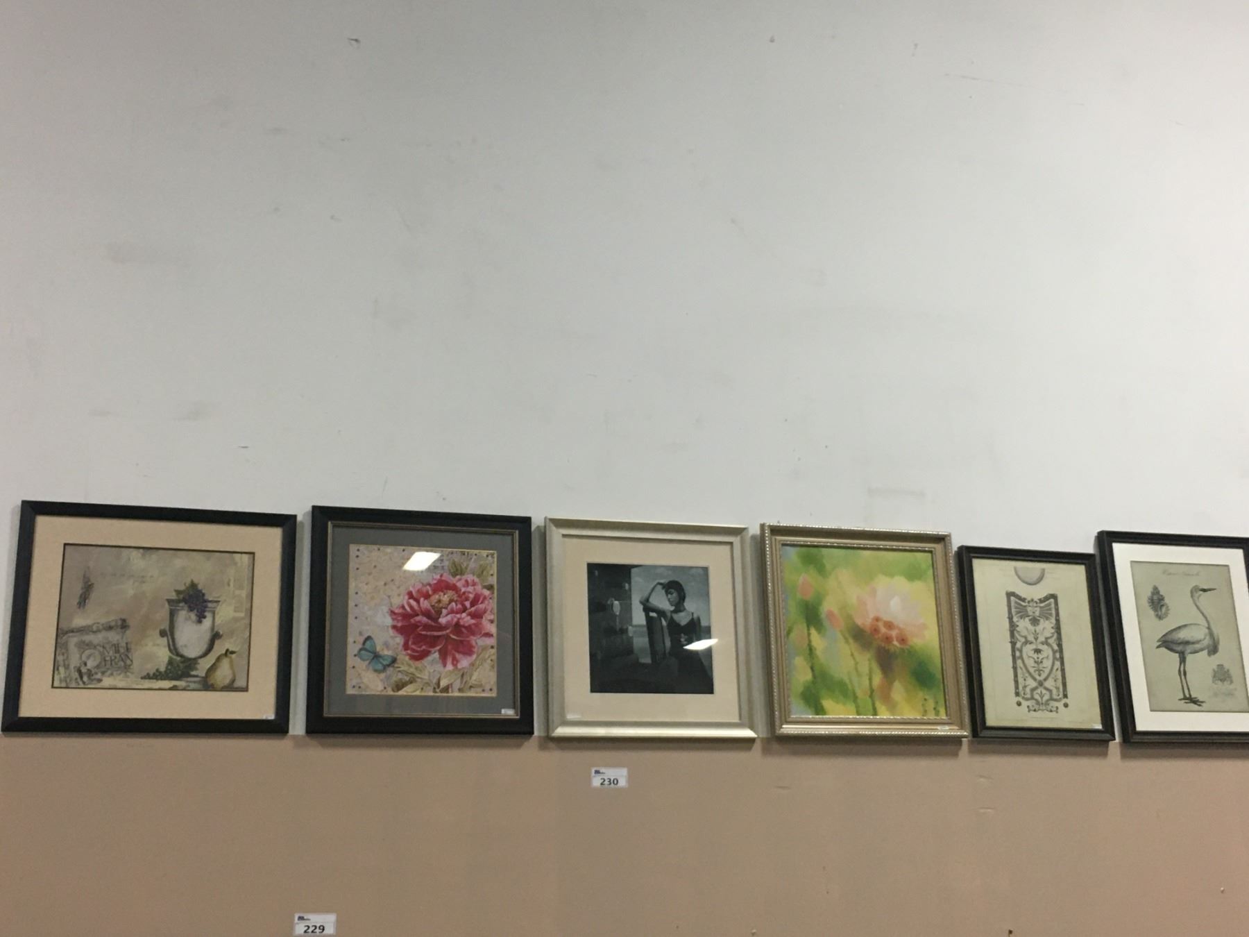 GROUP OF 6 FRAMED DECORATIVE ART PRINTS - ASSORTED SIZES