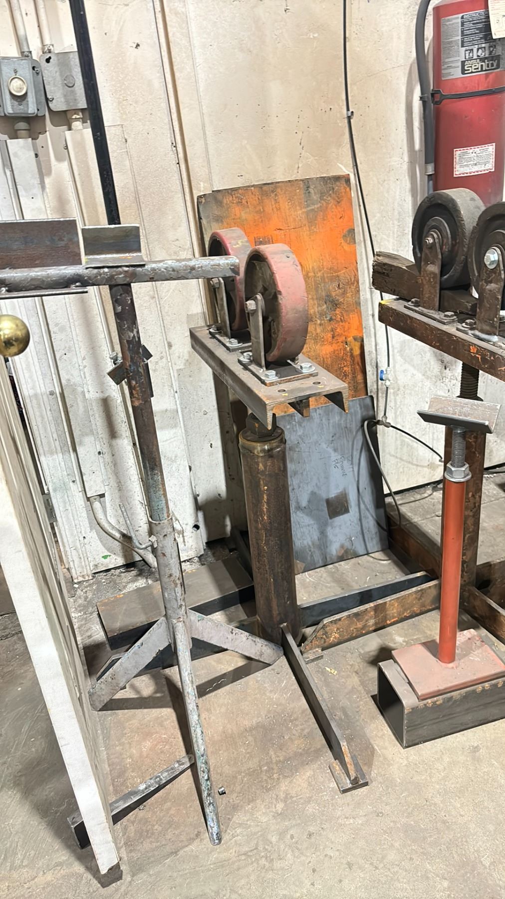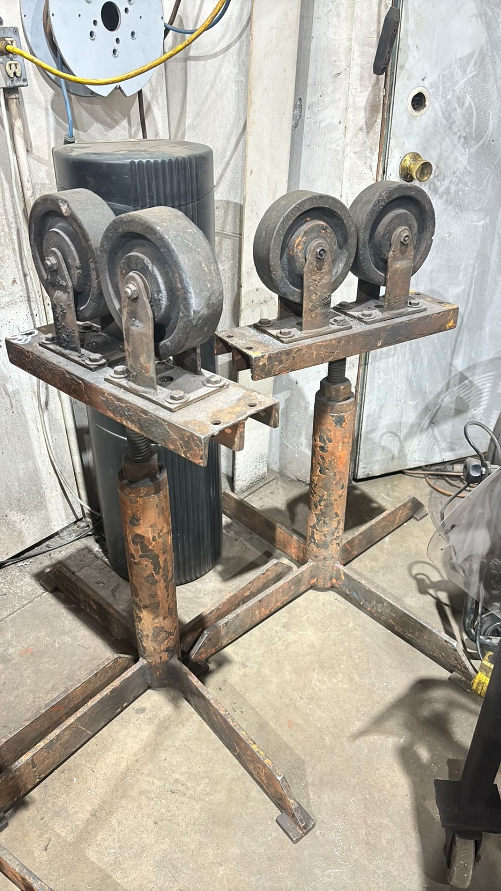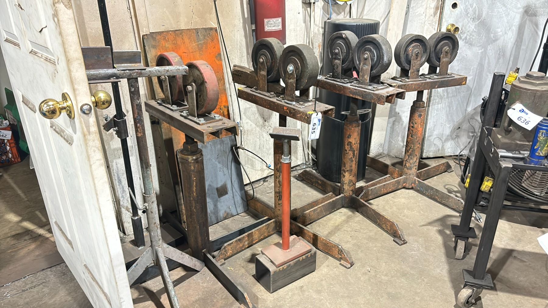 GROUP OF 7 ASSORTED STEEL MATERIAL ROLLERS & WORKSTANDS