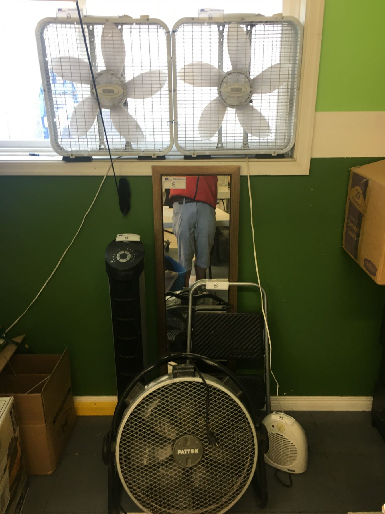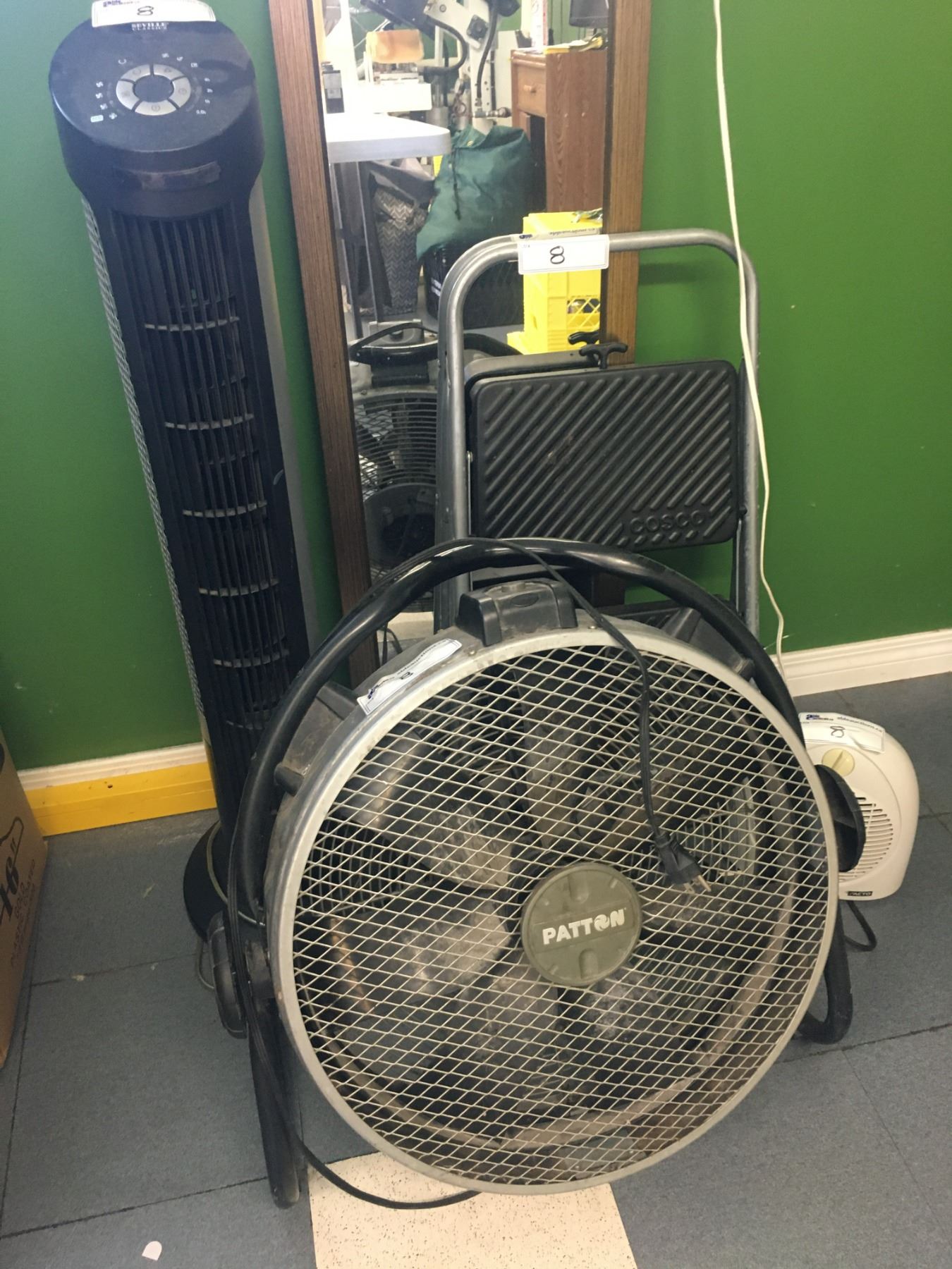 GROUP OF 8 ASSORTED ITEMS - FANS, HEATER, MIRROR & SMALL STEP STOOL