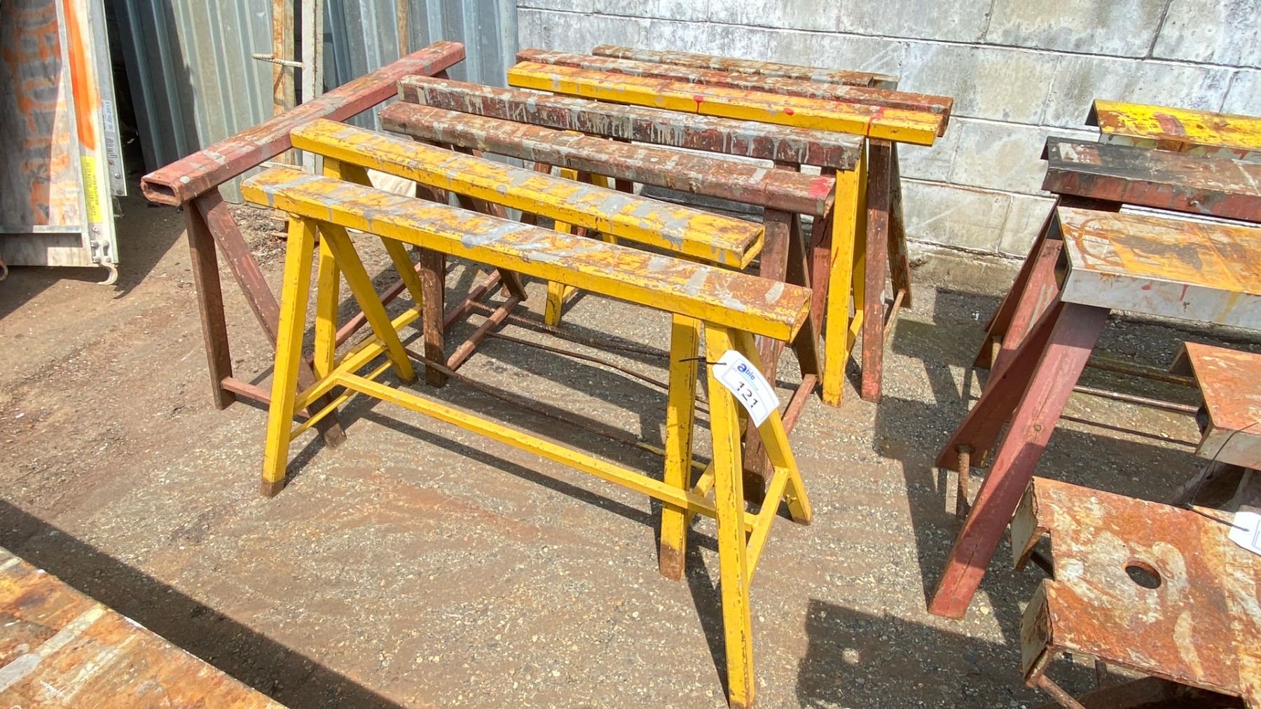 GROUP OF 8 CUSTOM BUILT METAL SAW HORSES APPROX 3.75'L X 2.5'H