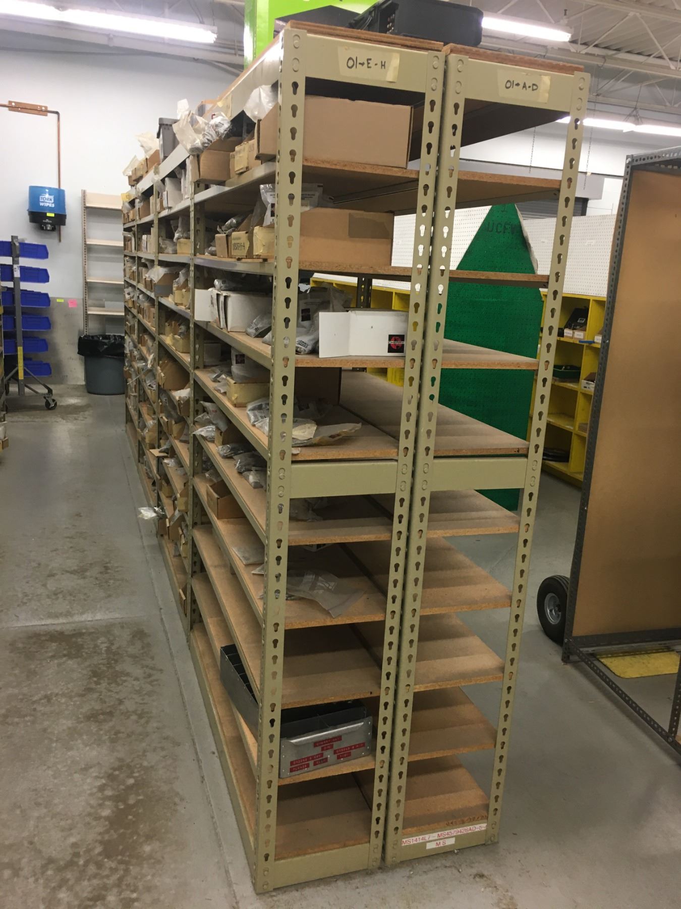 GROUP OF 8 METAL SHELF RACKING UNITS & CONTENTS-ASSORTED HARDWARE/FITTINGS EACH SHELF APPROX. 4FT X 6FT X 1FT