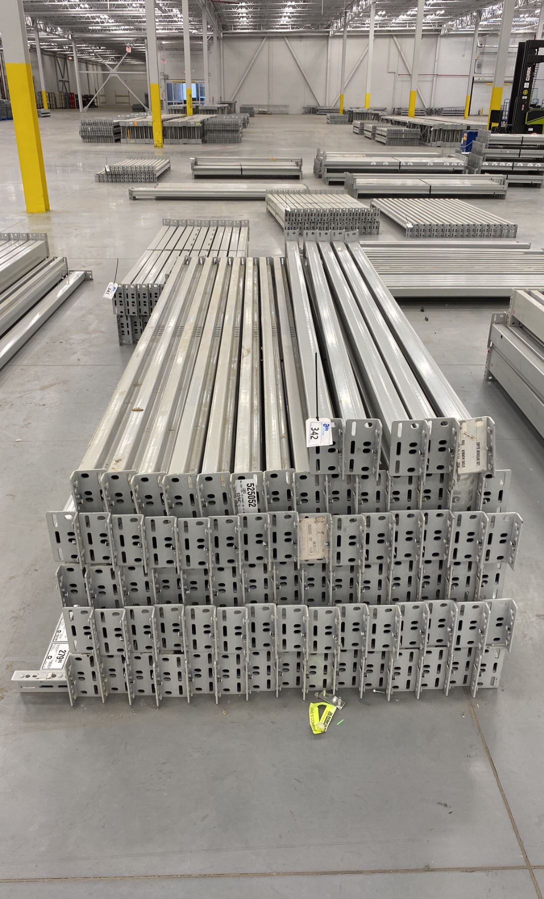 GROUP OF 80 GREY INDUSTRIAL PALLET RACKING SIDE BEAMS 102" X 3.5"