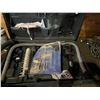 GROUP OF AIR TOOLS - CROWN STAPLER, POLISHER, WRENCH, SOCKET PLUS ASSORTED BITS & AIR TOOL OIL