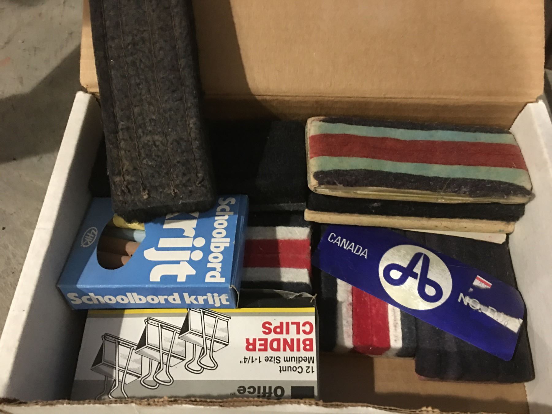 GROUP OF ANTIQUE TOOLS, ANTIQUE CHALK LINE DRAWING HOLDERS & ERASERS & CHALK