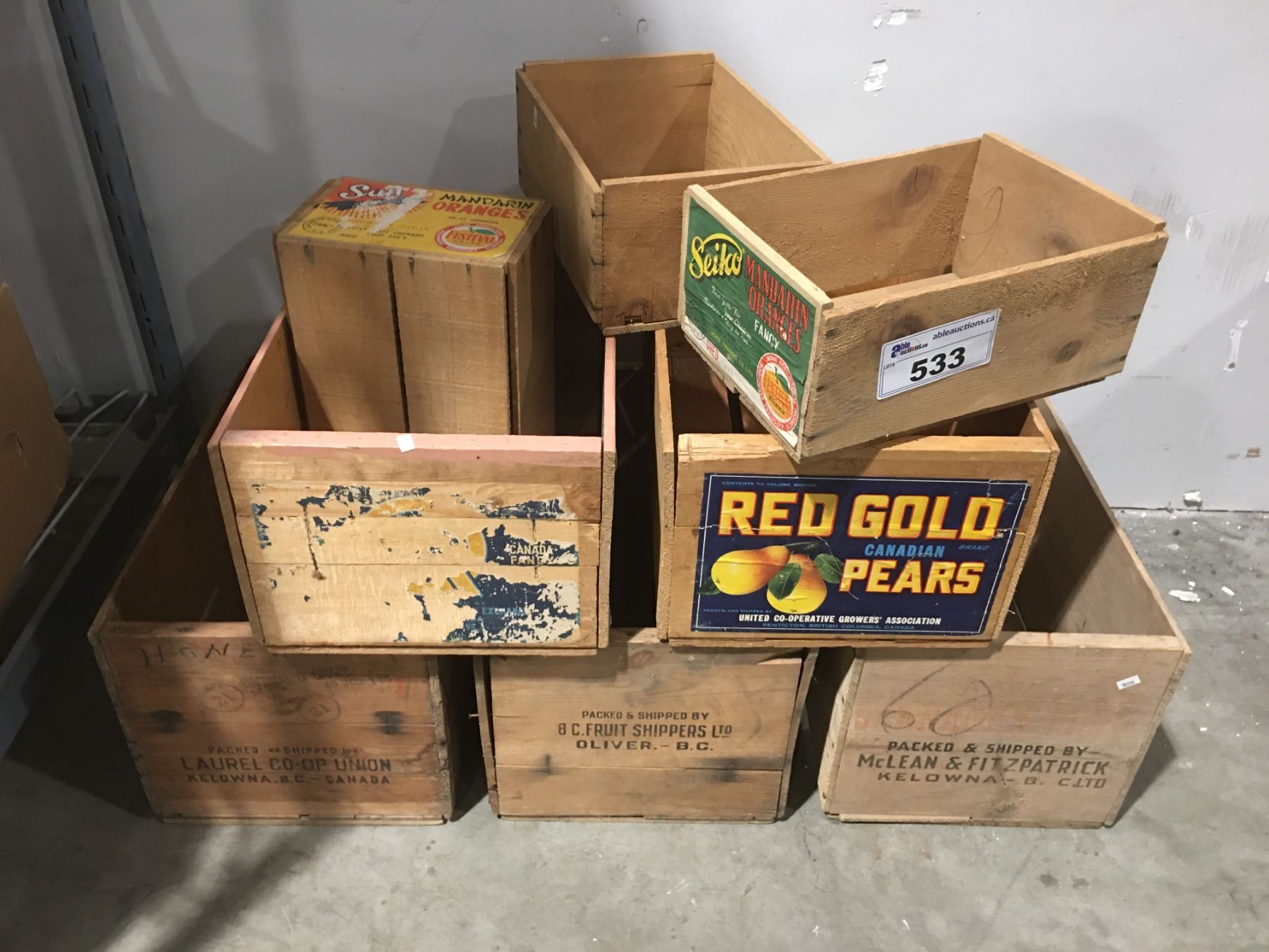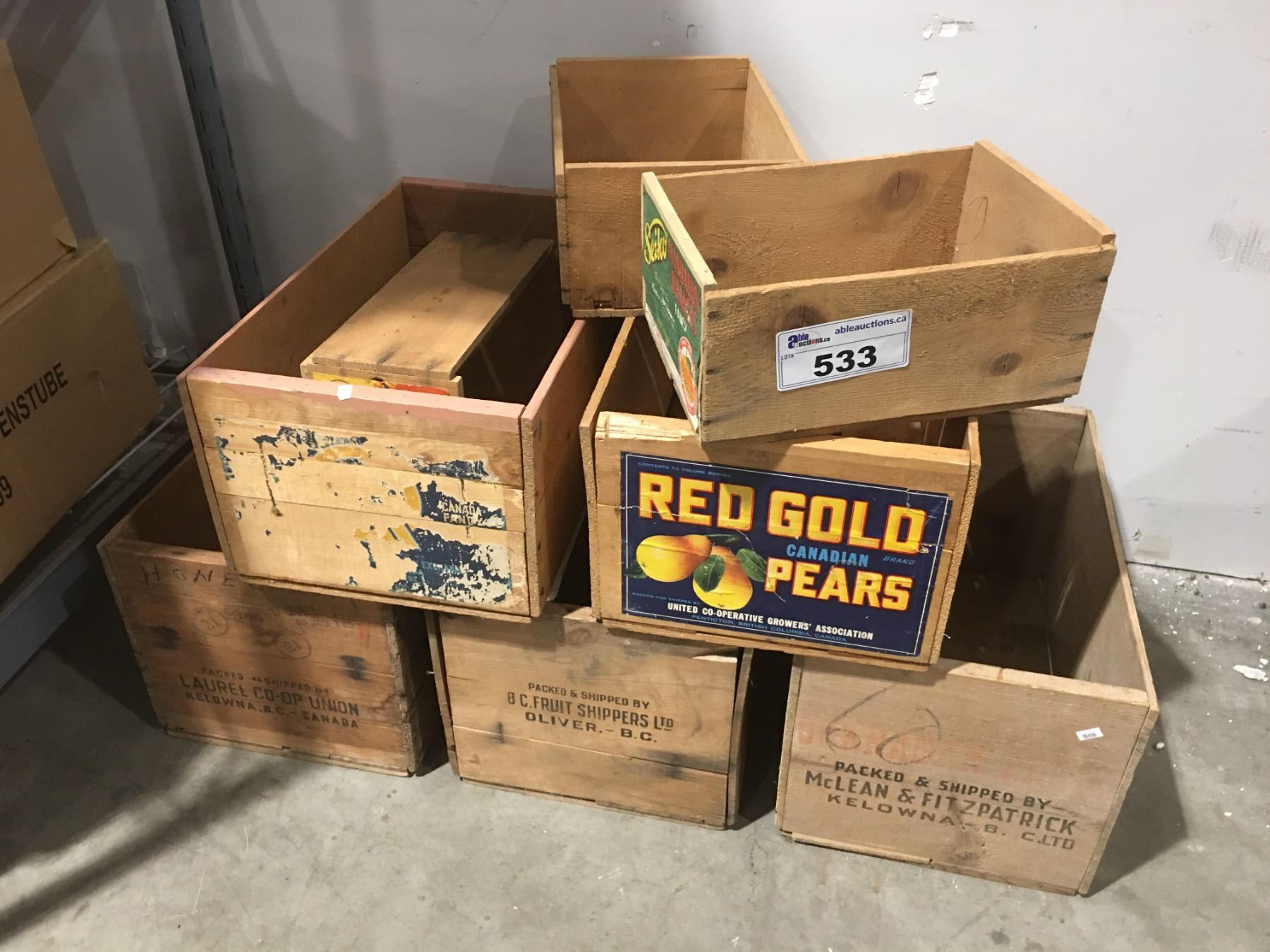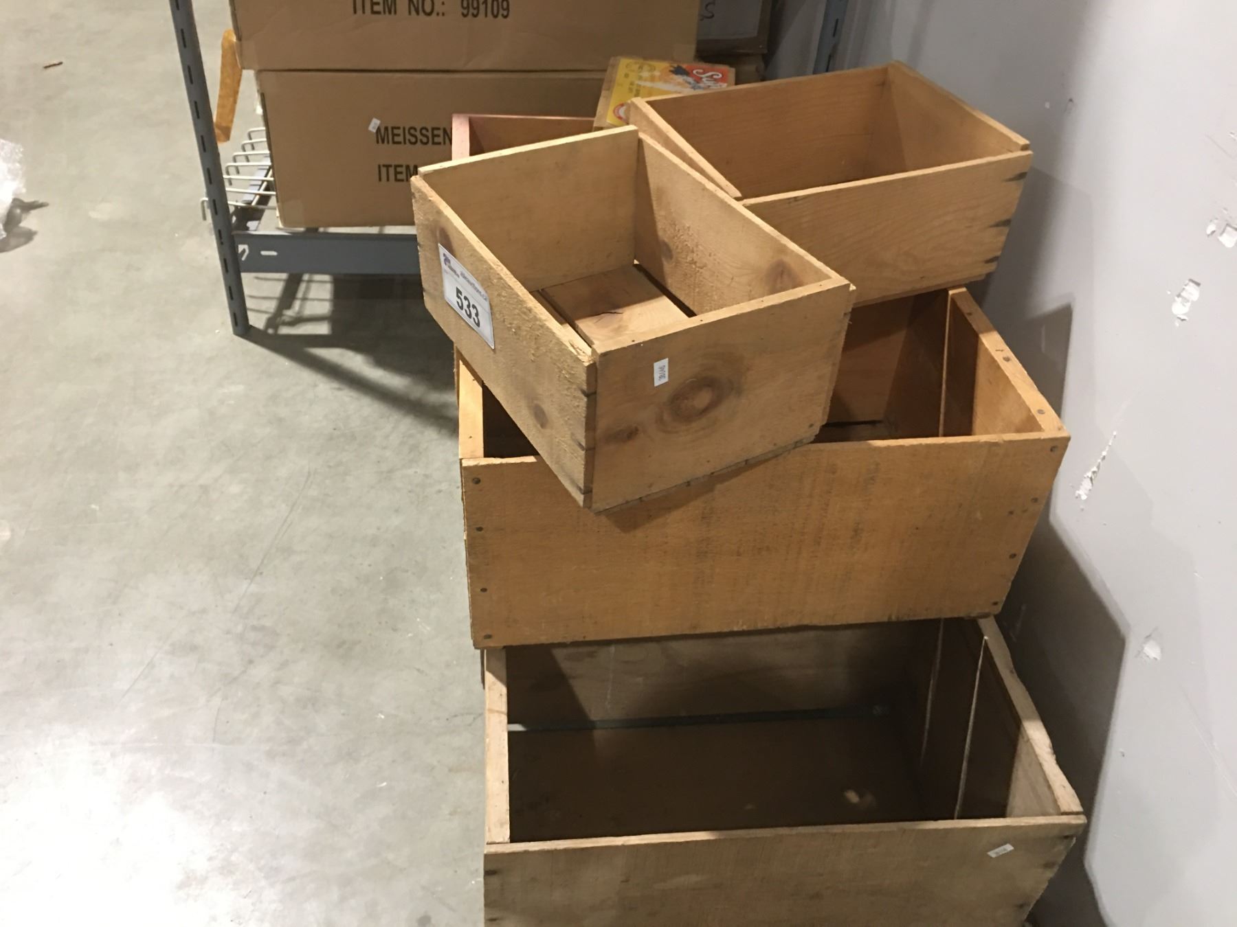 GROUP OF ANTIQUE WOODEN CRATES - 8 PCE