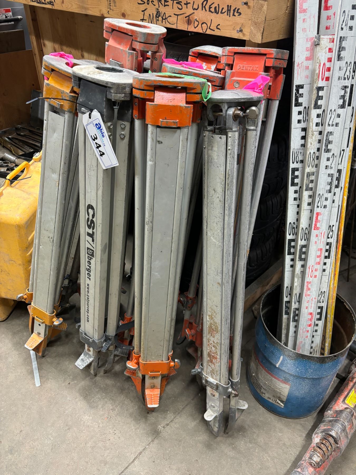 GROUP OF APPROX 12 SURVEYOR'S INSTRUMENT TRIPODS