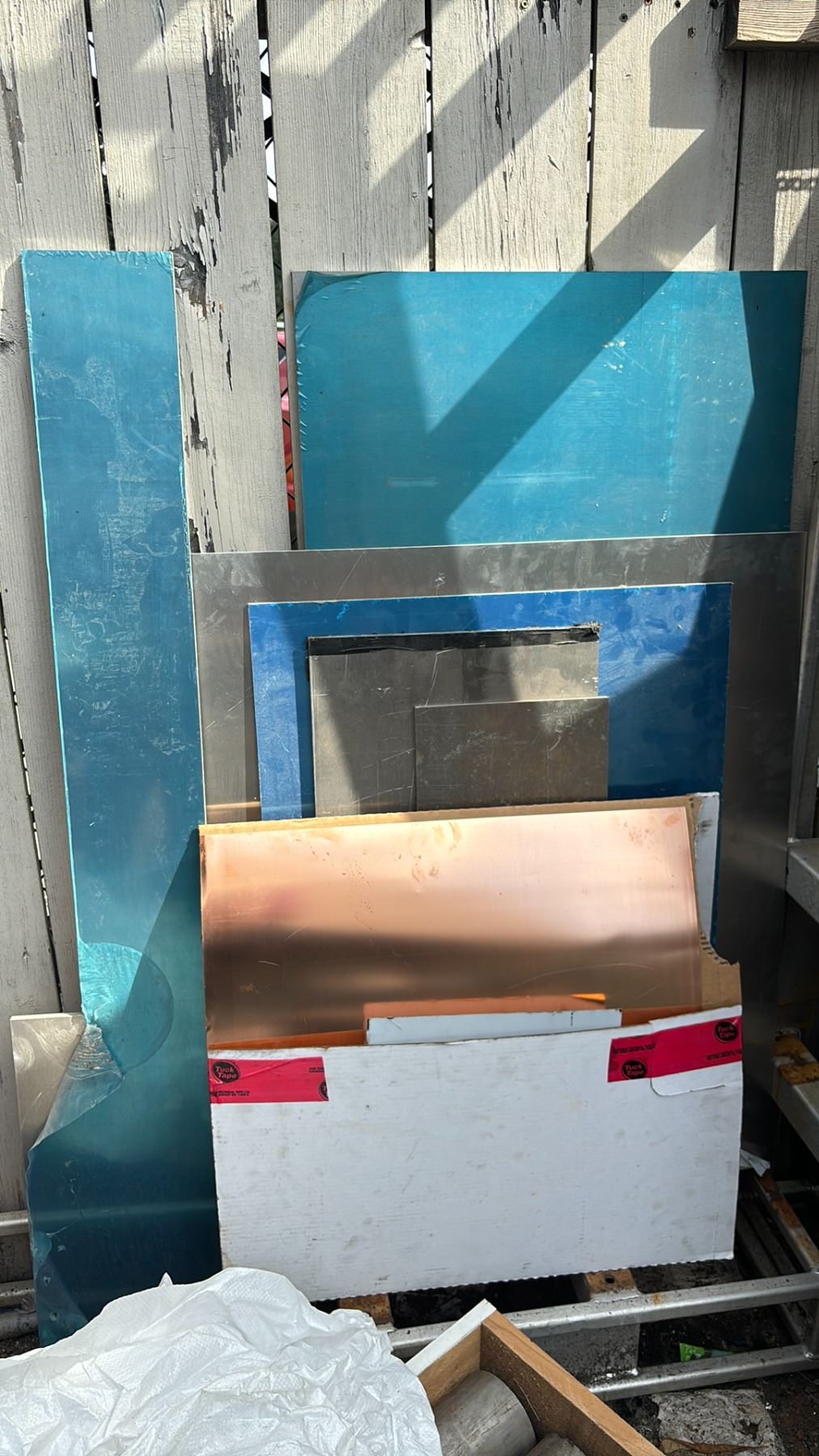 GROUP OF ASSORTED ALUMINUM FLAT BAR, SHEET & CHANNEL + 1 PARTIAL SHEET OF COPPER MATERIAL