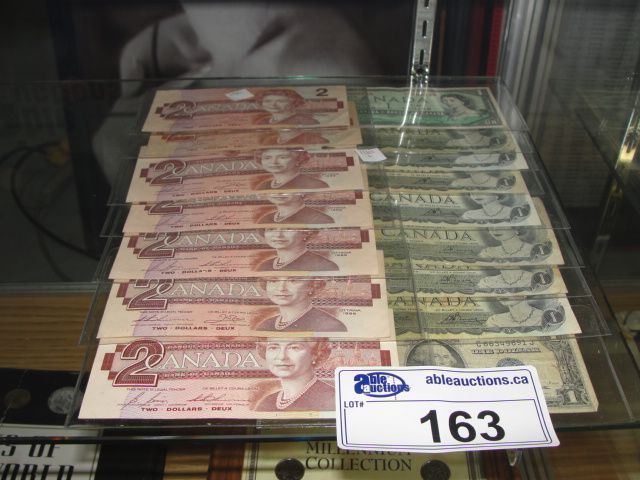 GROUP OF ASSORTED CANADIAN BANK NOTES - 7 $2 CANADIAN BANK NOTES, 8 $1 CANADIAN BANK NOTES, 1 US $1 BANK NOTE