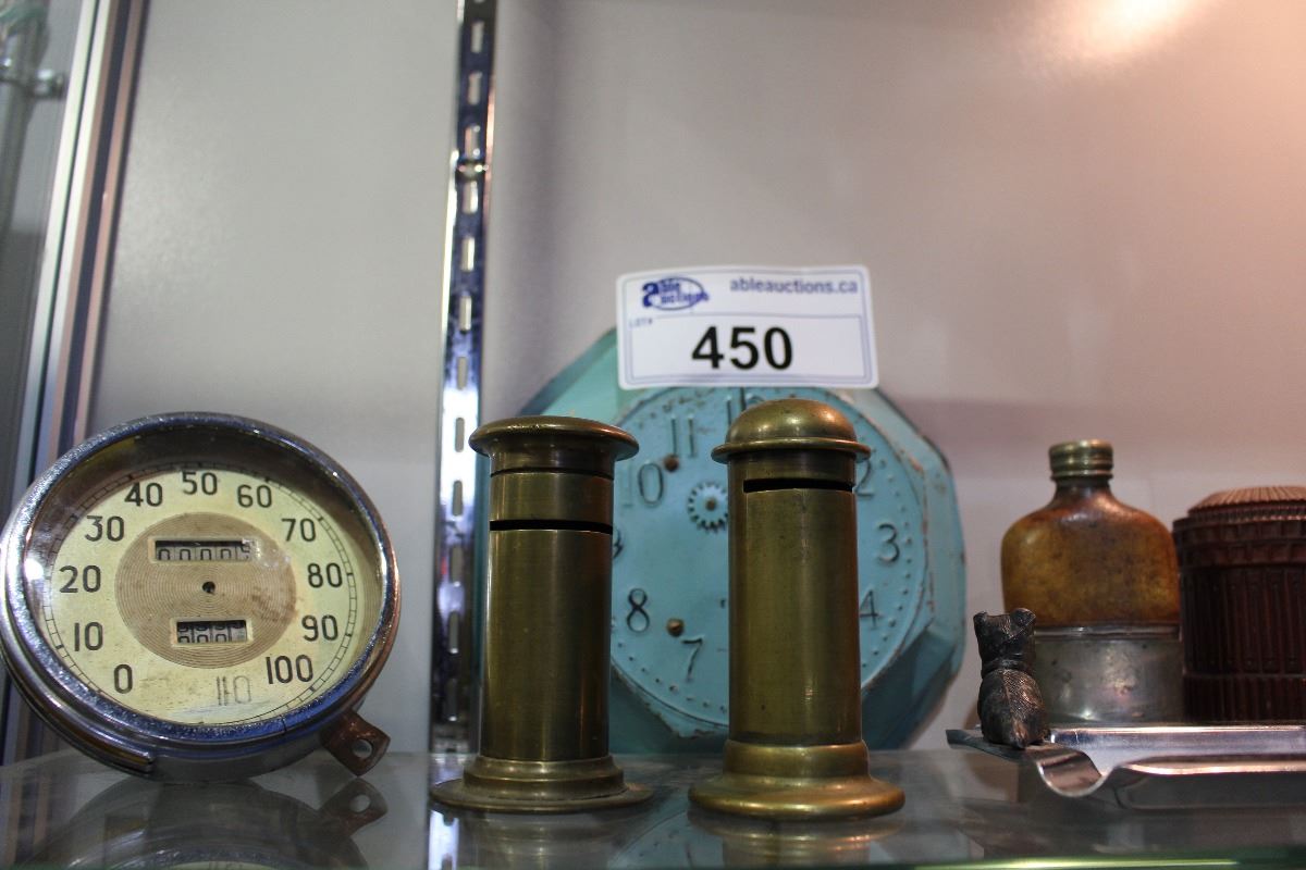 GROUP OF ASSORTED COLLECTABLES; INDIAN CHIEF BOOK ENDS, COIN BANKS, CLOCKS, ETC