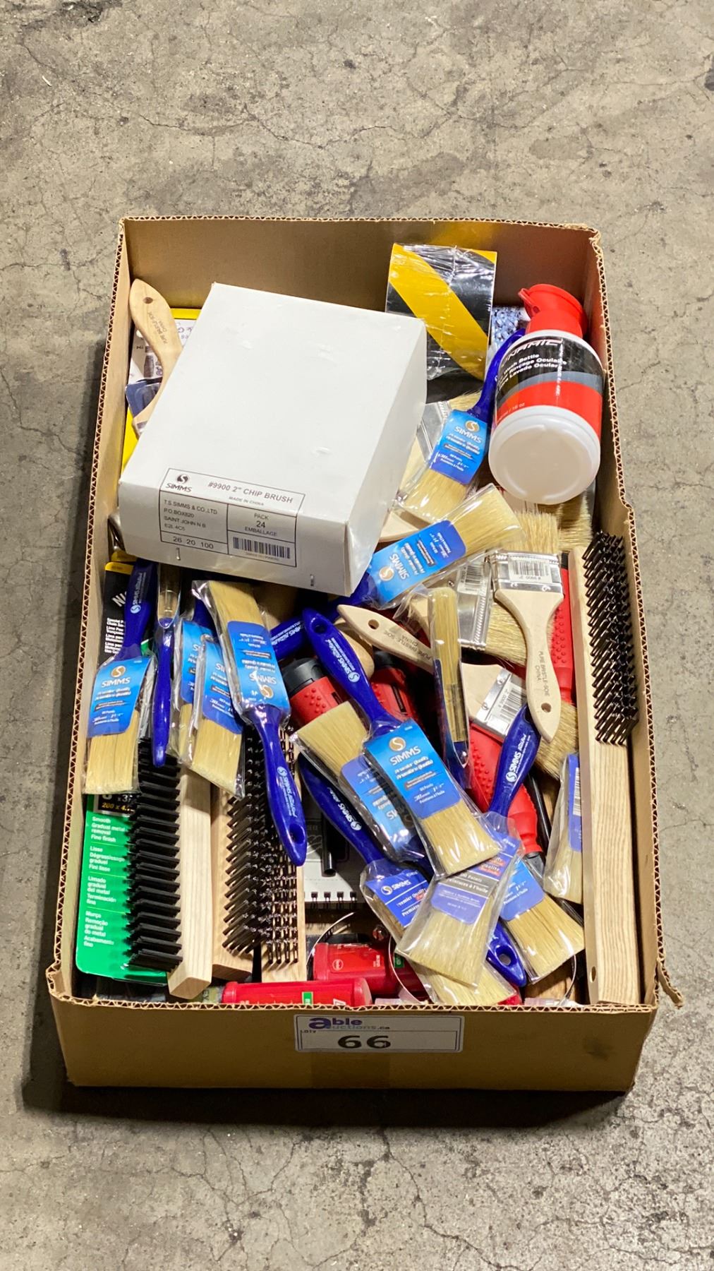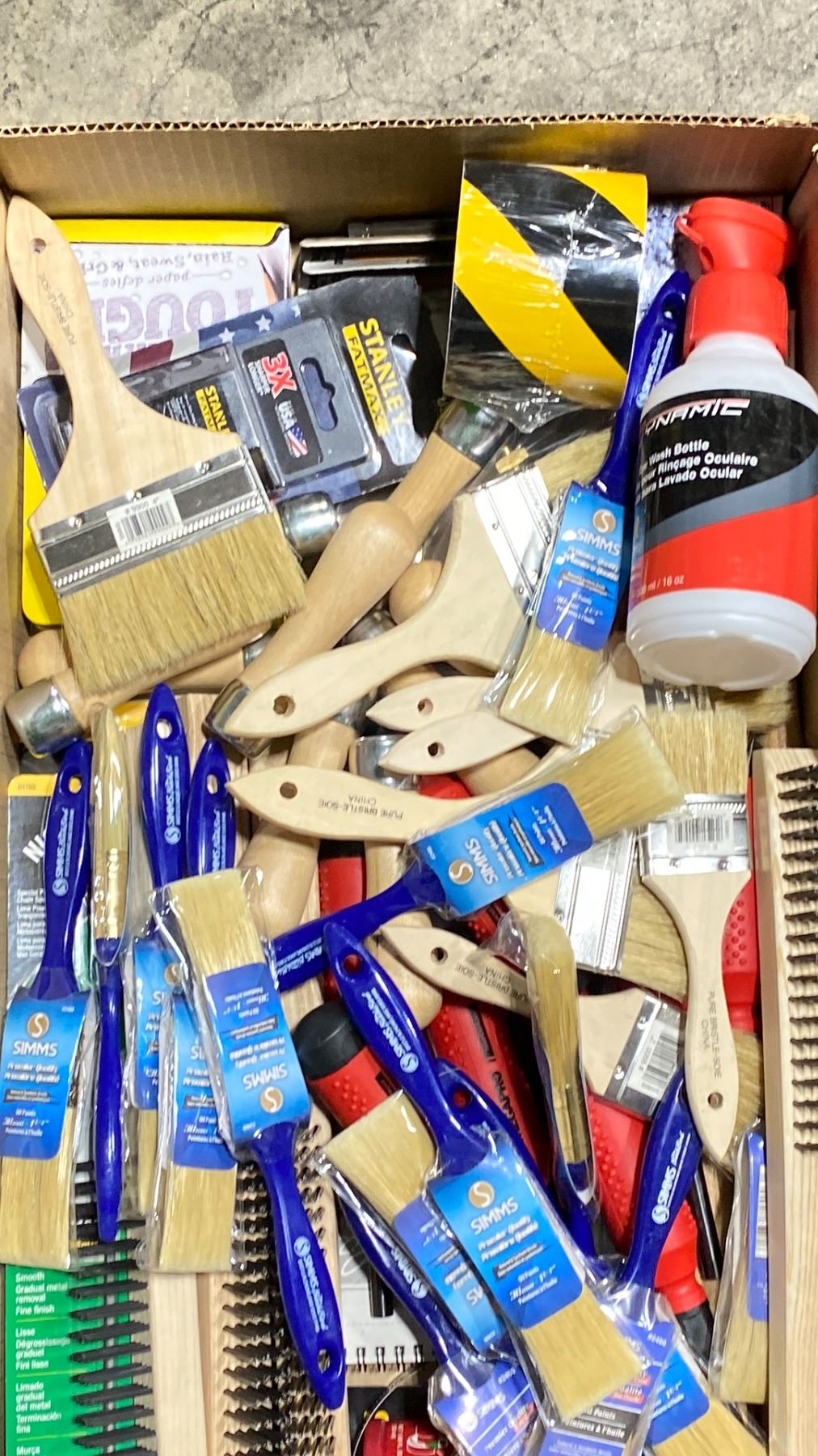 GROUP OF ASSORTED SIMMS BRUSHES & SHOP SUPPLIES - INCLUDES PAINT BRUSHES / WIRE BRUSHES ETC