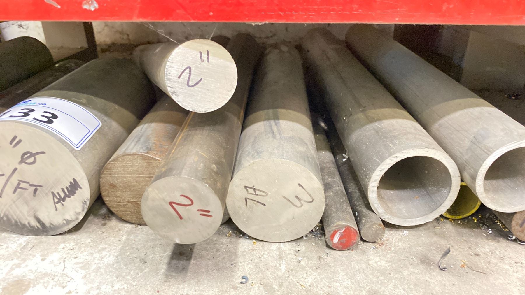 GROUP OF ASSORTED SOLID ROUND STOCK - ALUMINUM & STEEL MOST LENGTHS UNDER 1.5' ( APPROX. 15 PCS )