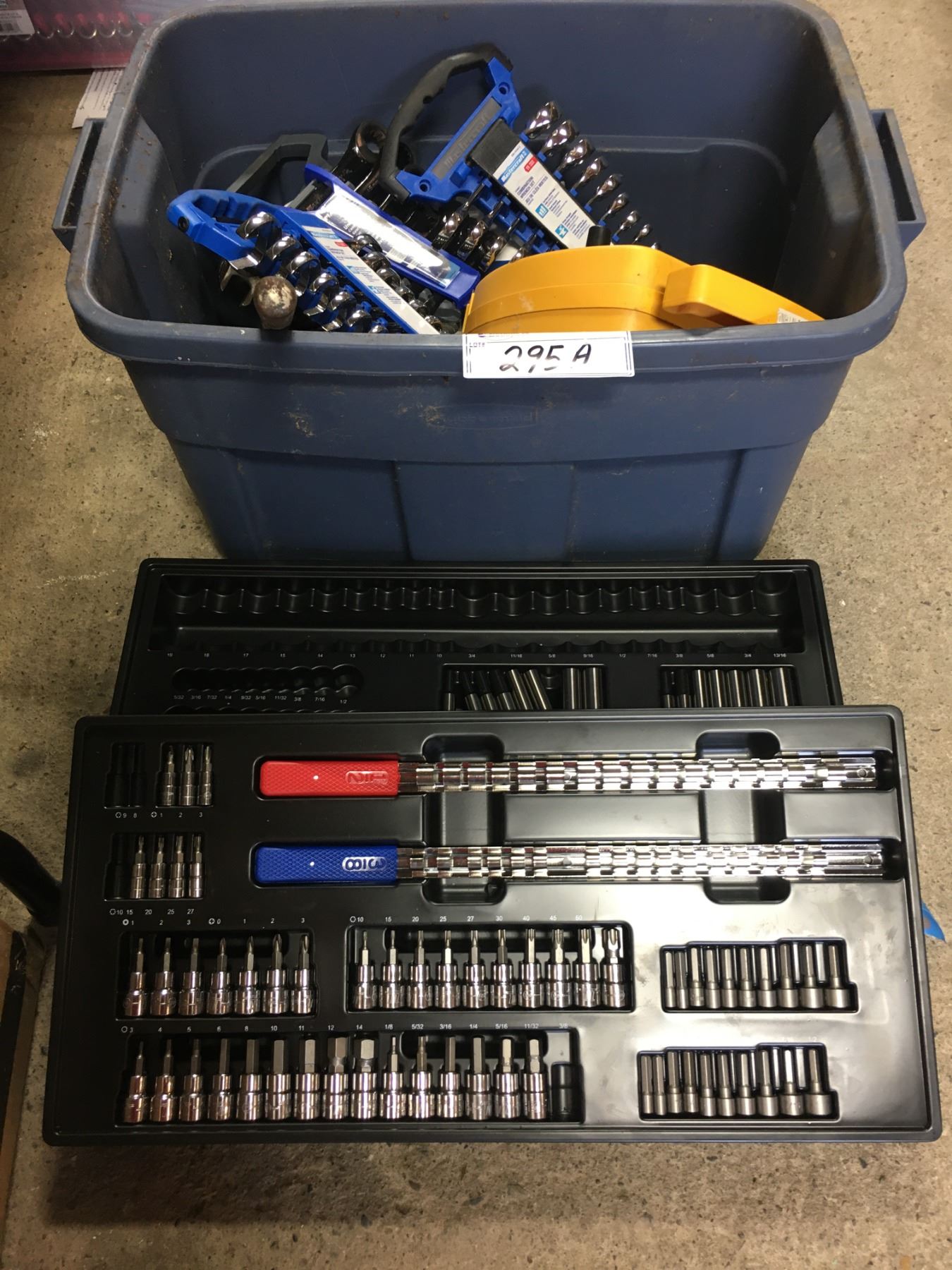 GROUP OF ASSORTED TOOLS-MASTERCRAFT COMBINATION WRENCH SETS, SOCKETS, ETC