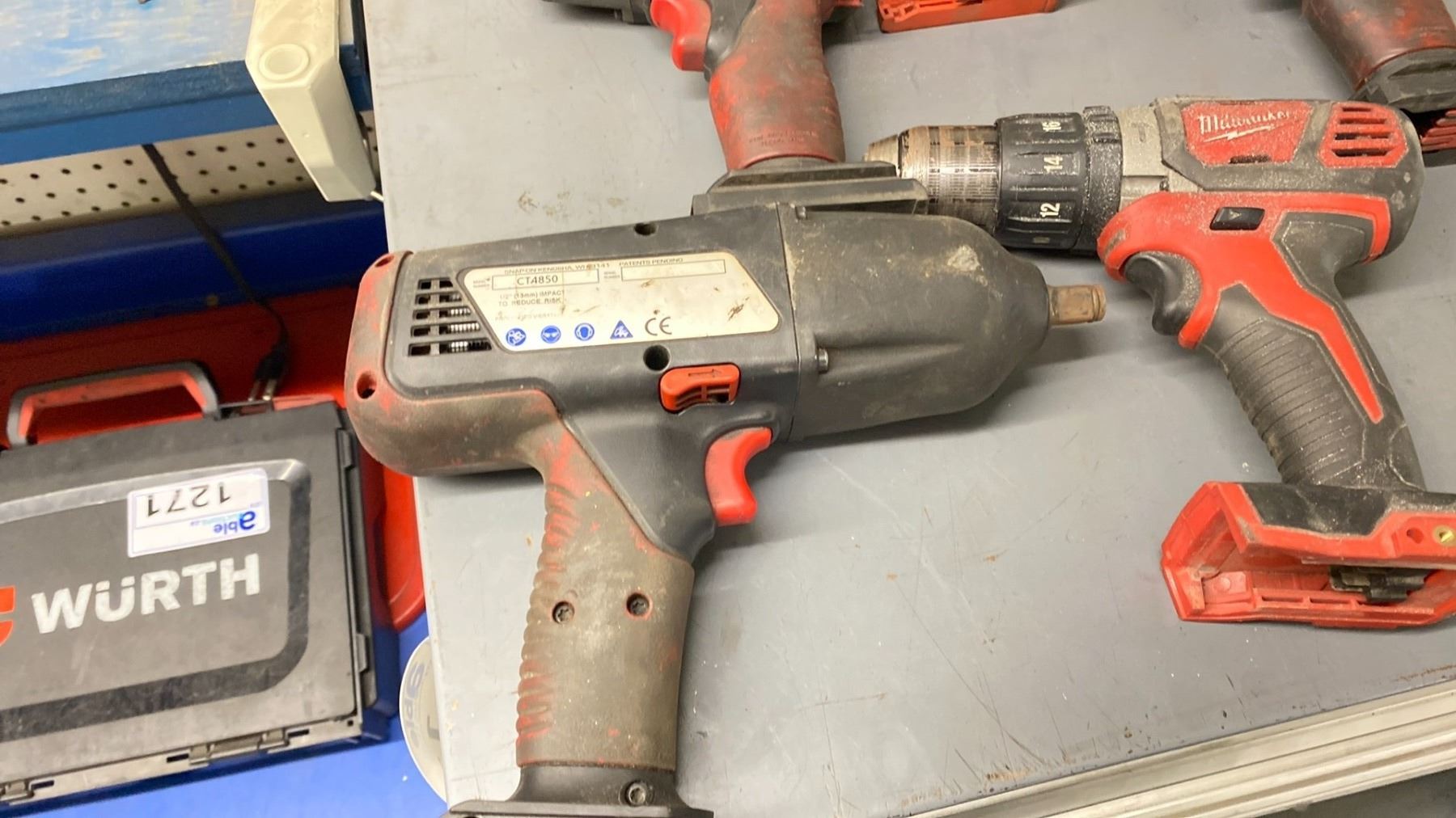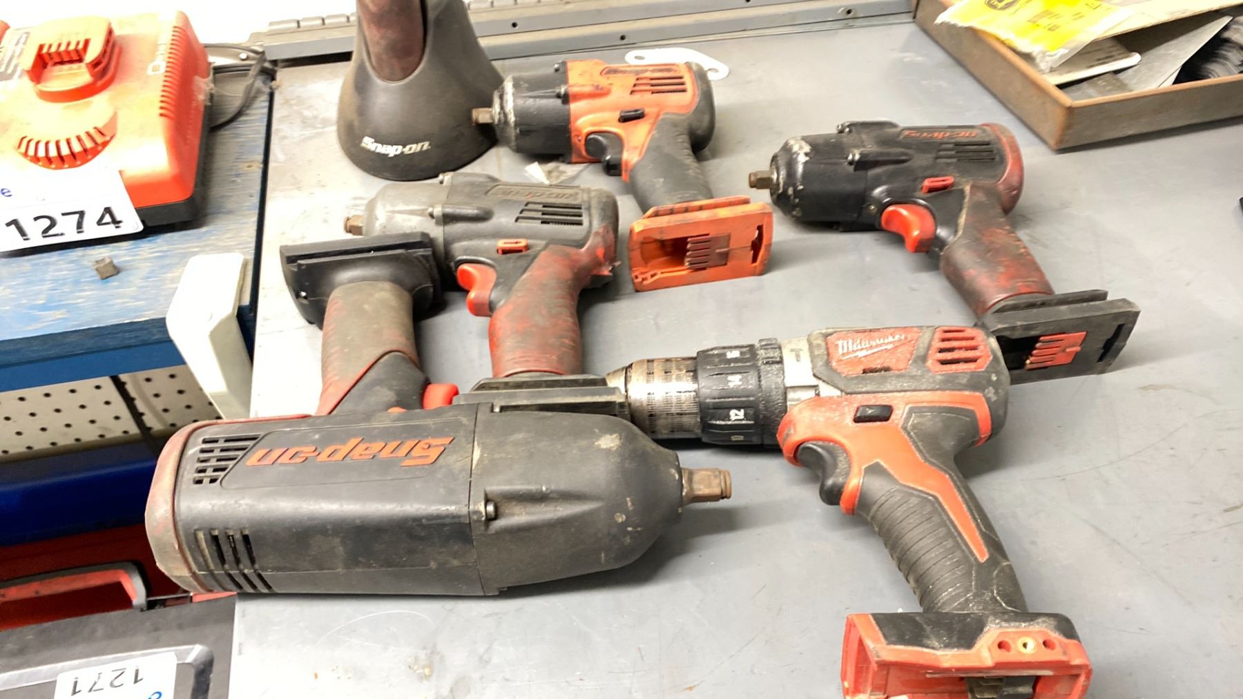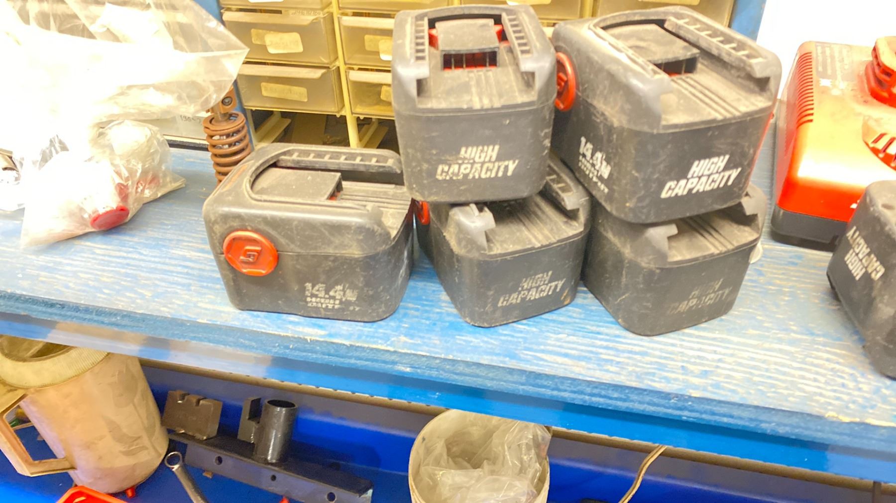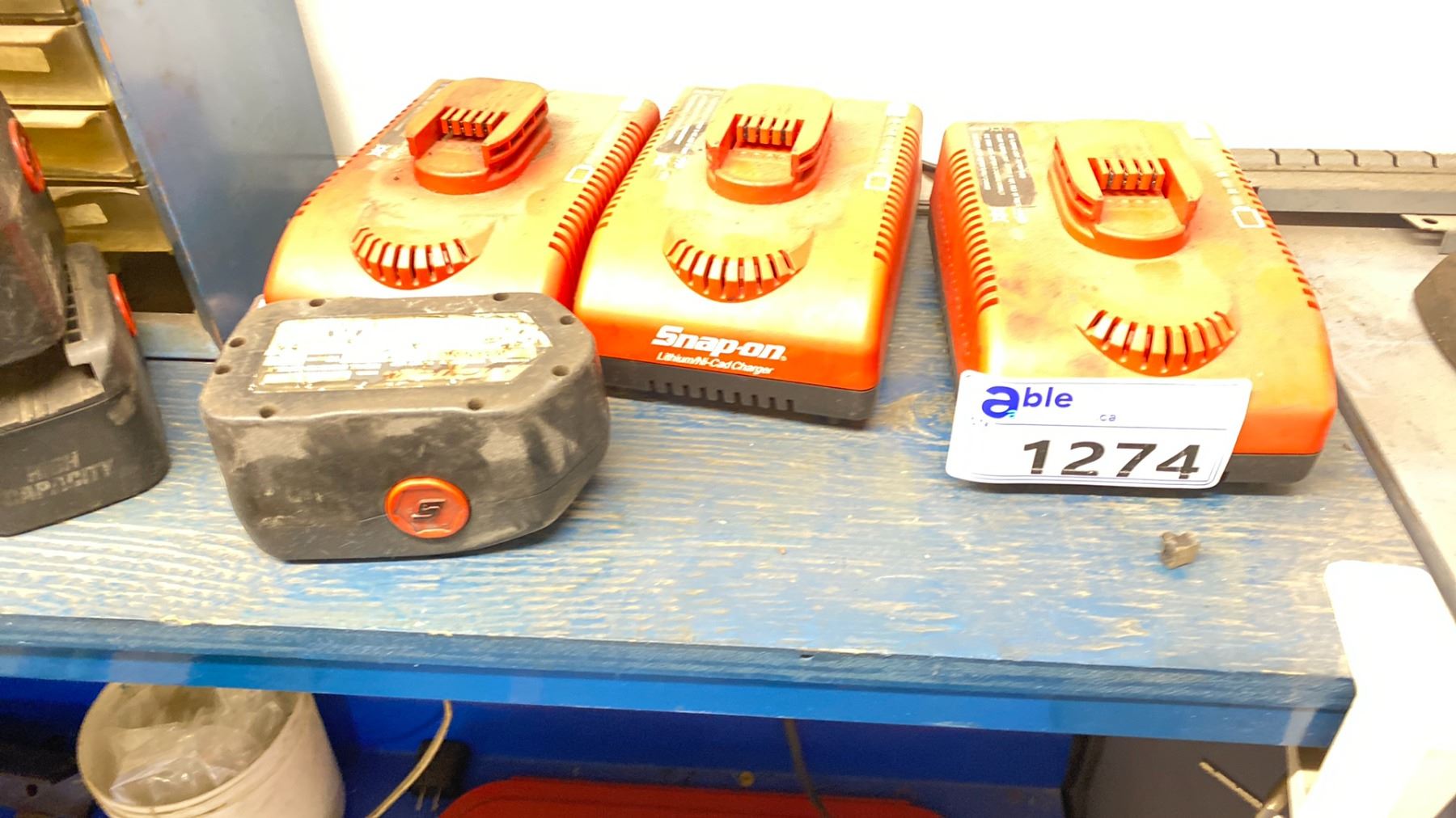 GROUP OF ASST SNAP-ON BATTERY POWERED TOOLS WITH CHARGERS. 14.4V AND 18V NI-CAD