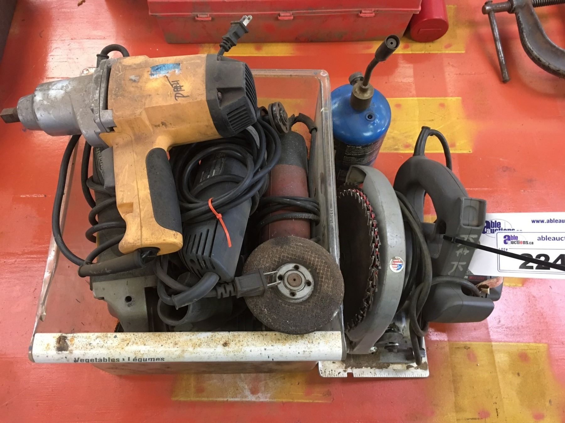 GROUP OF ASSTD POWER TOOLS SKIL SAW, GRINDERS, IMPACT DRIVER