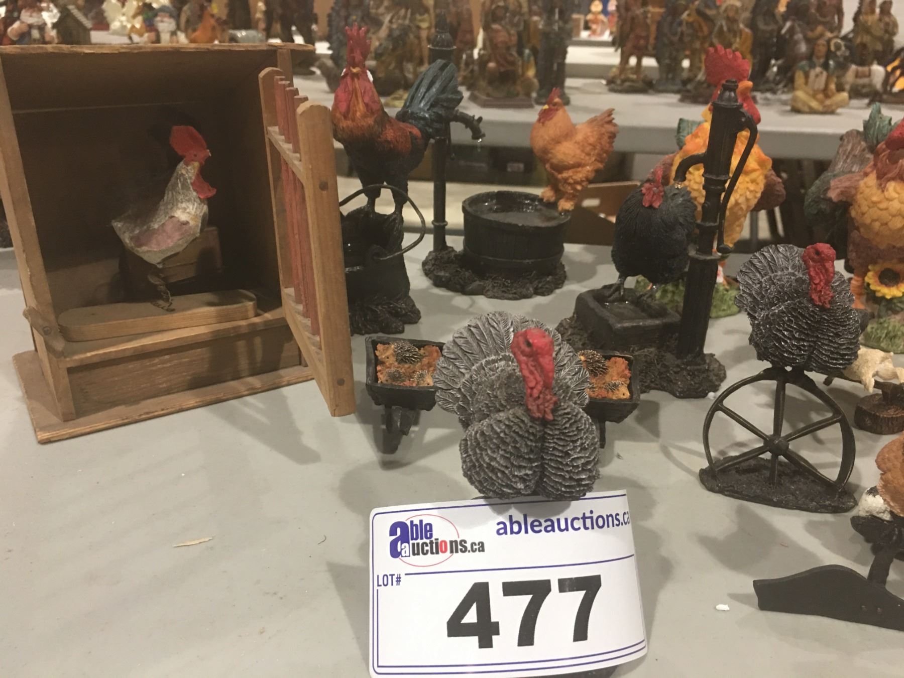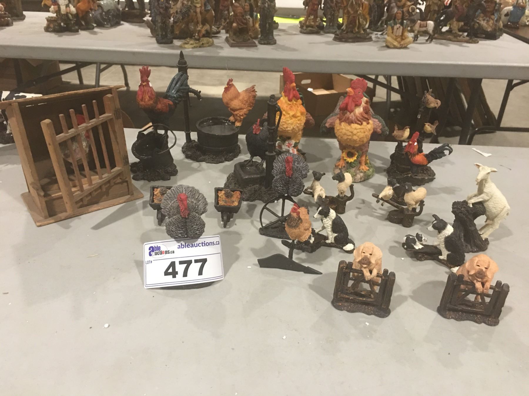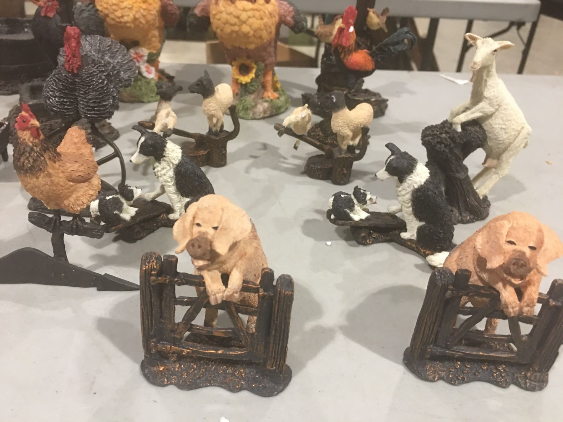 GROUP OF ASSTED FIGURINES ROOSTERS/PIGS/DOGS/TURKEYS & HEDGEHOGS