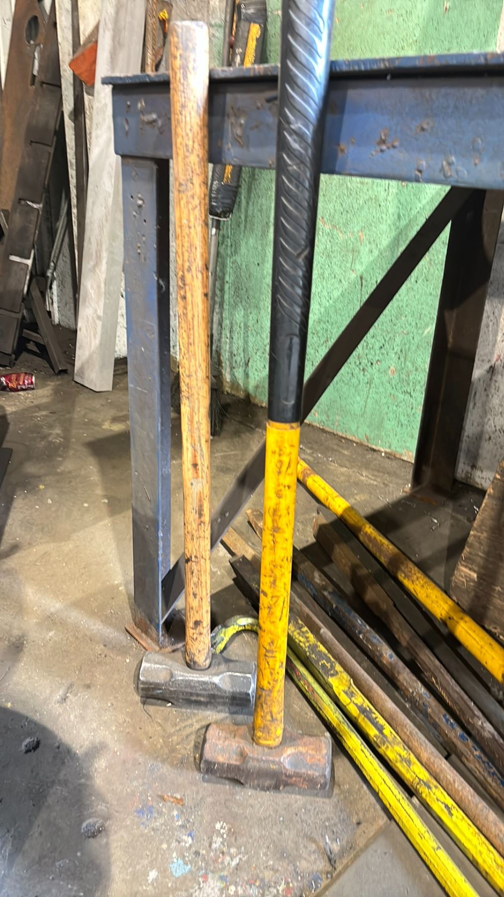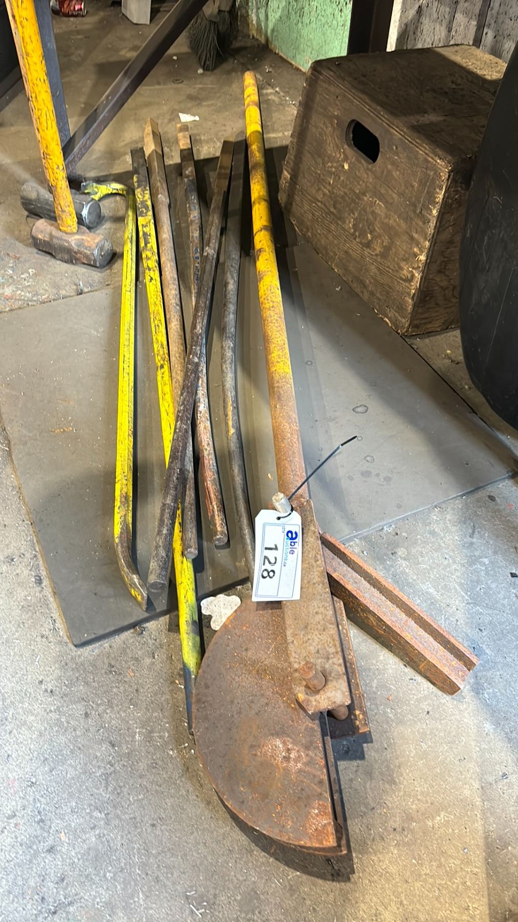 GROUP OF CONSTRUCTION HAND TOOLS - PRY BARS, CROW BARS AND SLEDGE HAMMERS (APPROX. 9 PCS.)