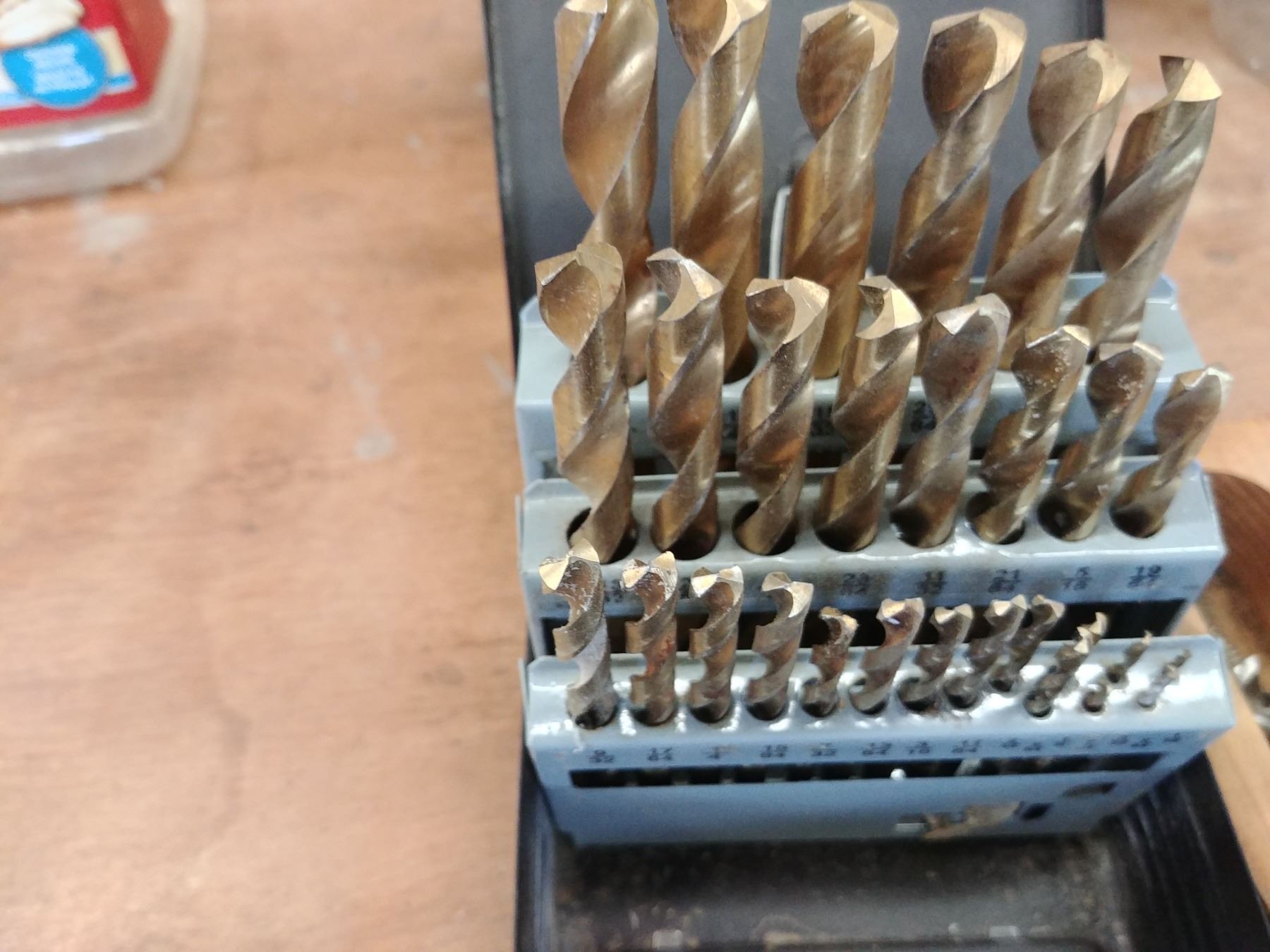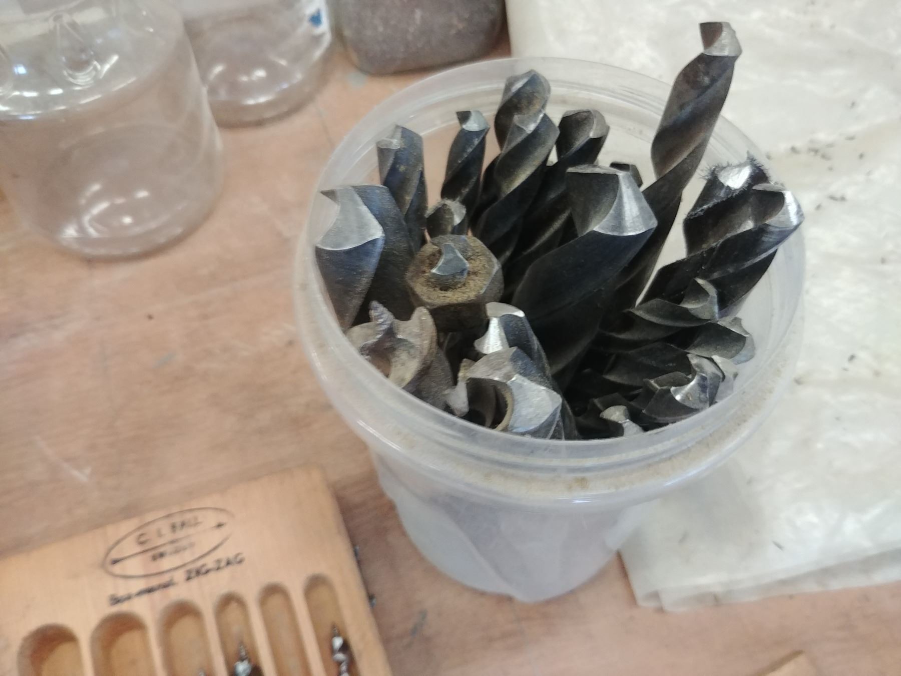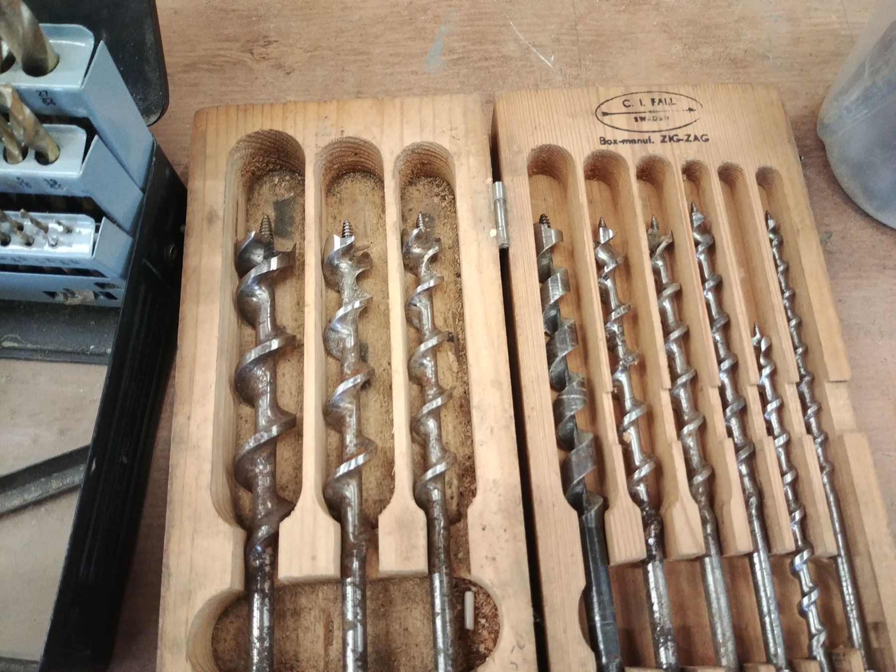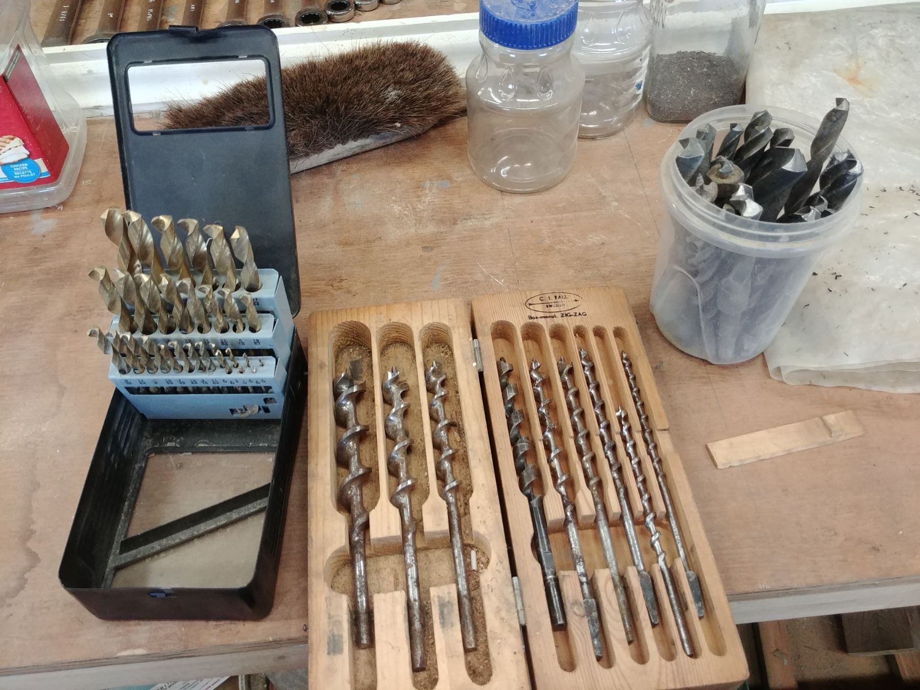 GROUP OF DRILL BITS, DRILL INDEX TO 1/2", WOOD AUGERS UP TO 1" & ASST HIGH SPEED METAL BITS UP TO 31/32NDS