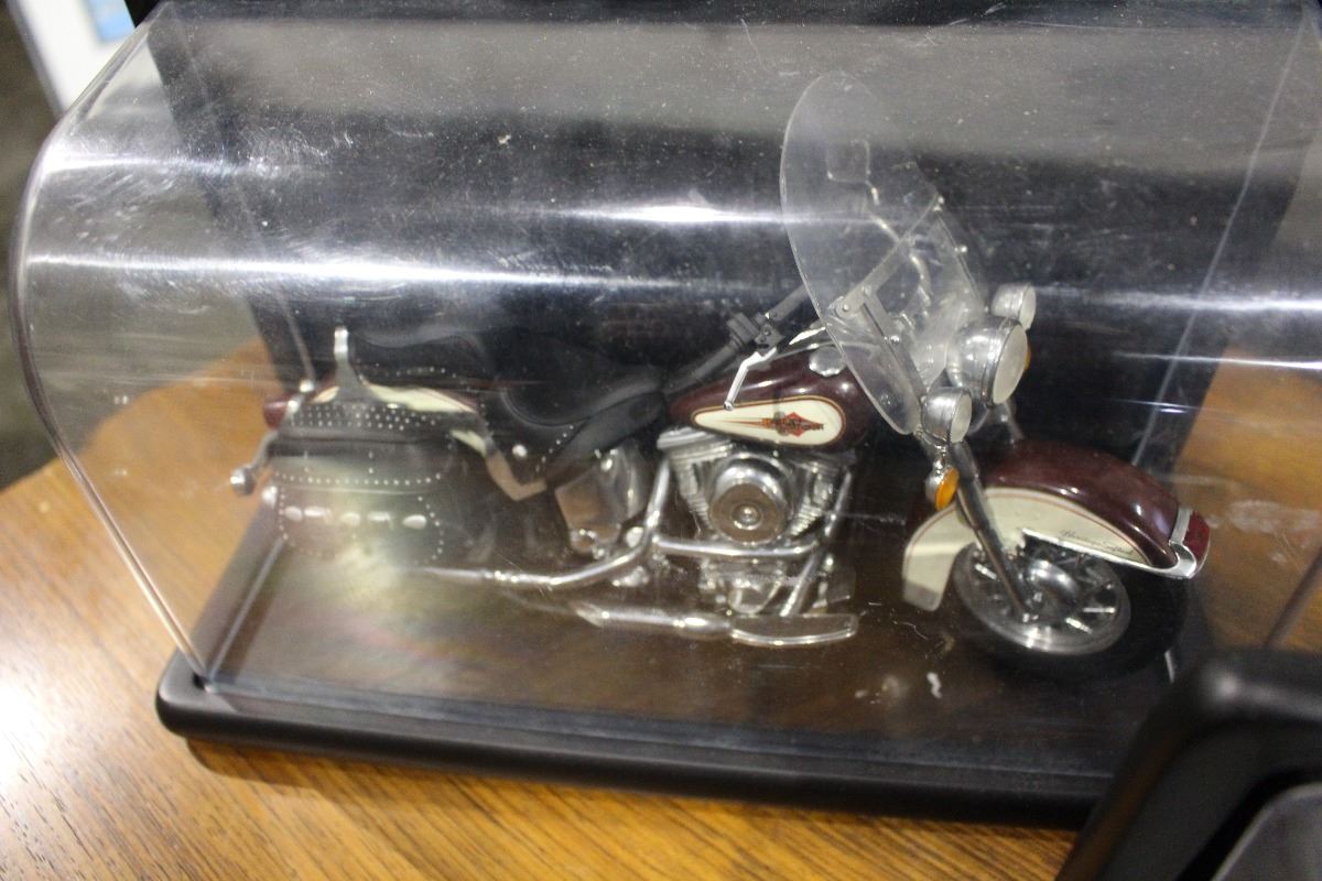 GROUP OF FOUR CAST METAL DECORATIVE DISPLAY CARS AND MOTORCYCLES