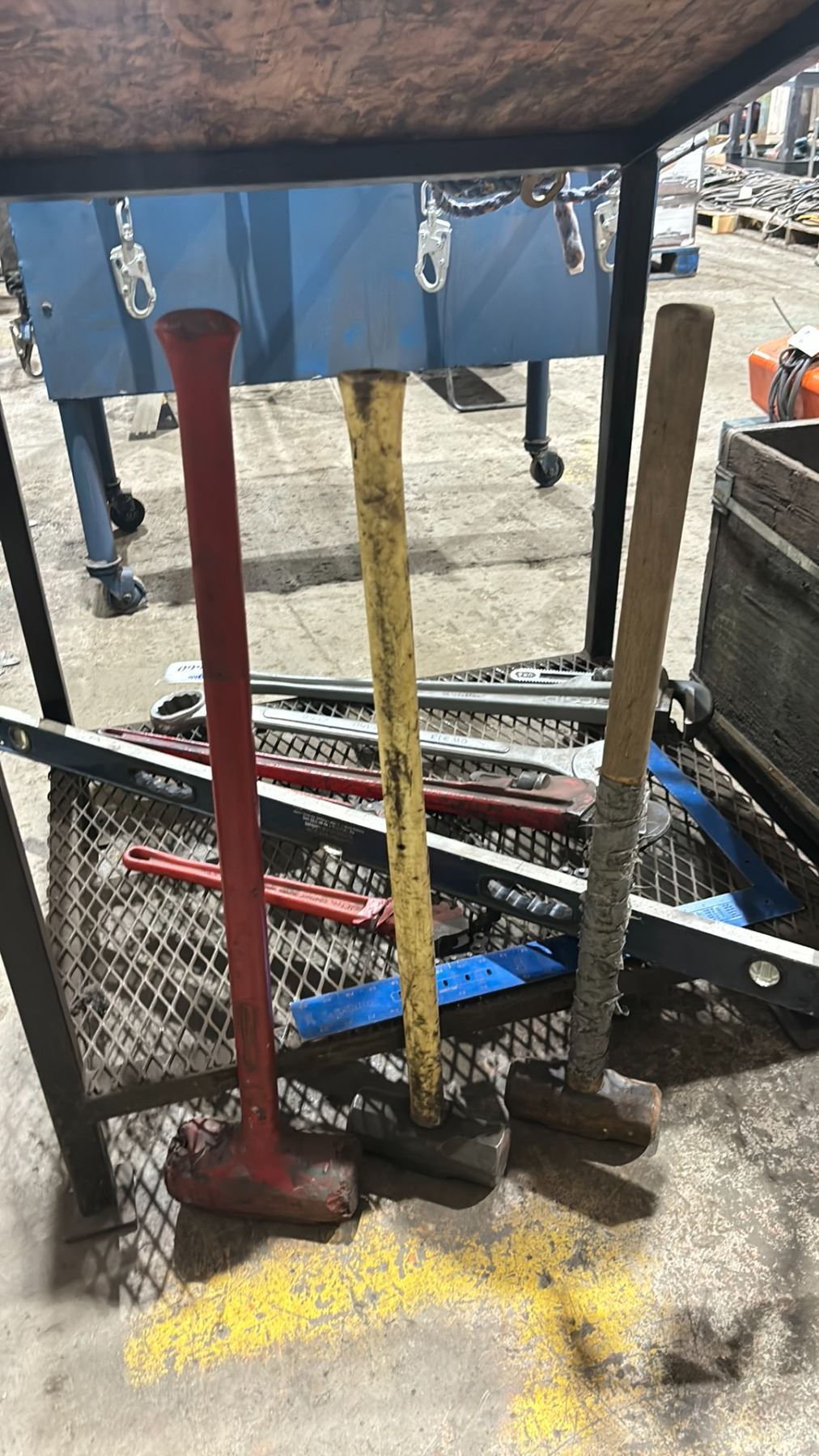 GROUP OF HAND TOOLS - PIPE WRENCHES, 2" X 3/8" COMBINATION WRENCH, RIDGID 36" PIPE WRENCH, SQUARES, LEVELS & SLEDGE HAMMERS