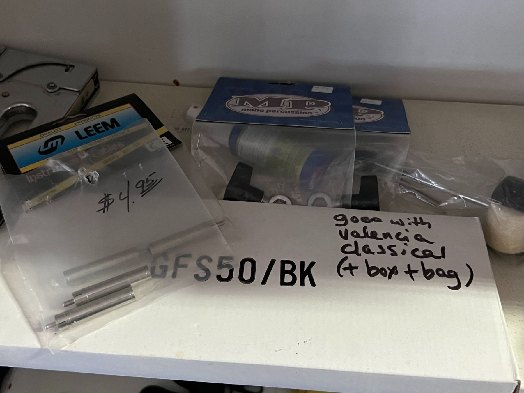 GROUP OF INSTRUMENT REPAIR ITEMS (INCLUDING SAX CLEANER, MUSICAL INSTRUMENT REPAIR PARTS, OILS, PICK HOLDERS, MOUTH PIECES ETC.)