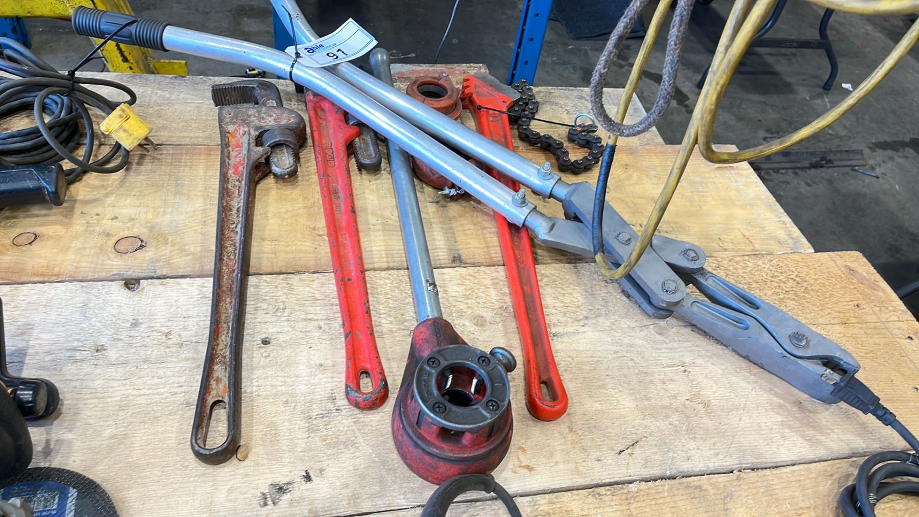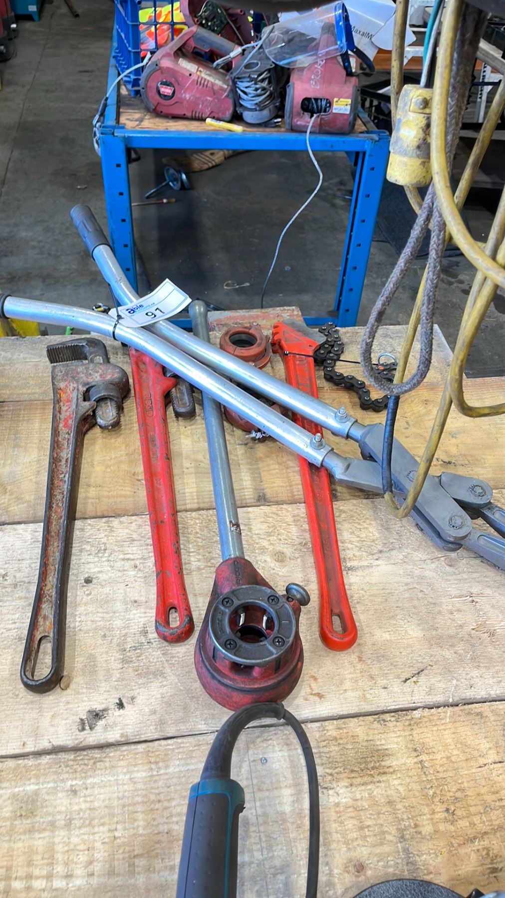 GROUP OF RIGID PIPE FITTING TOOLS & HOLE CRIMPER