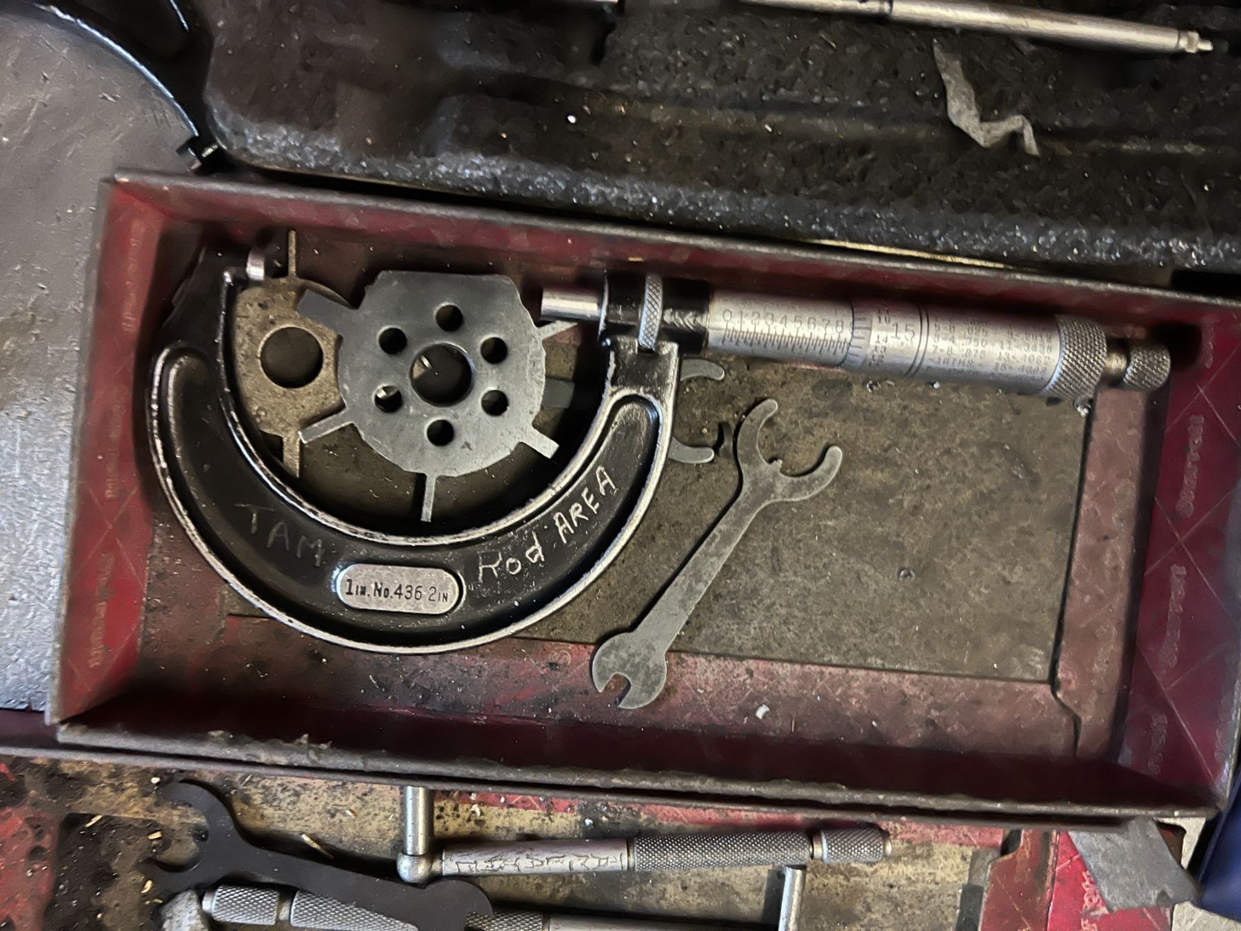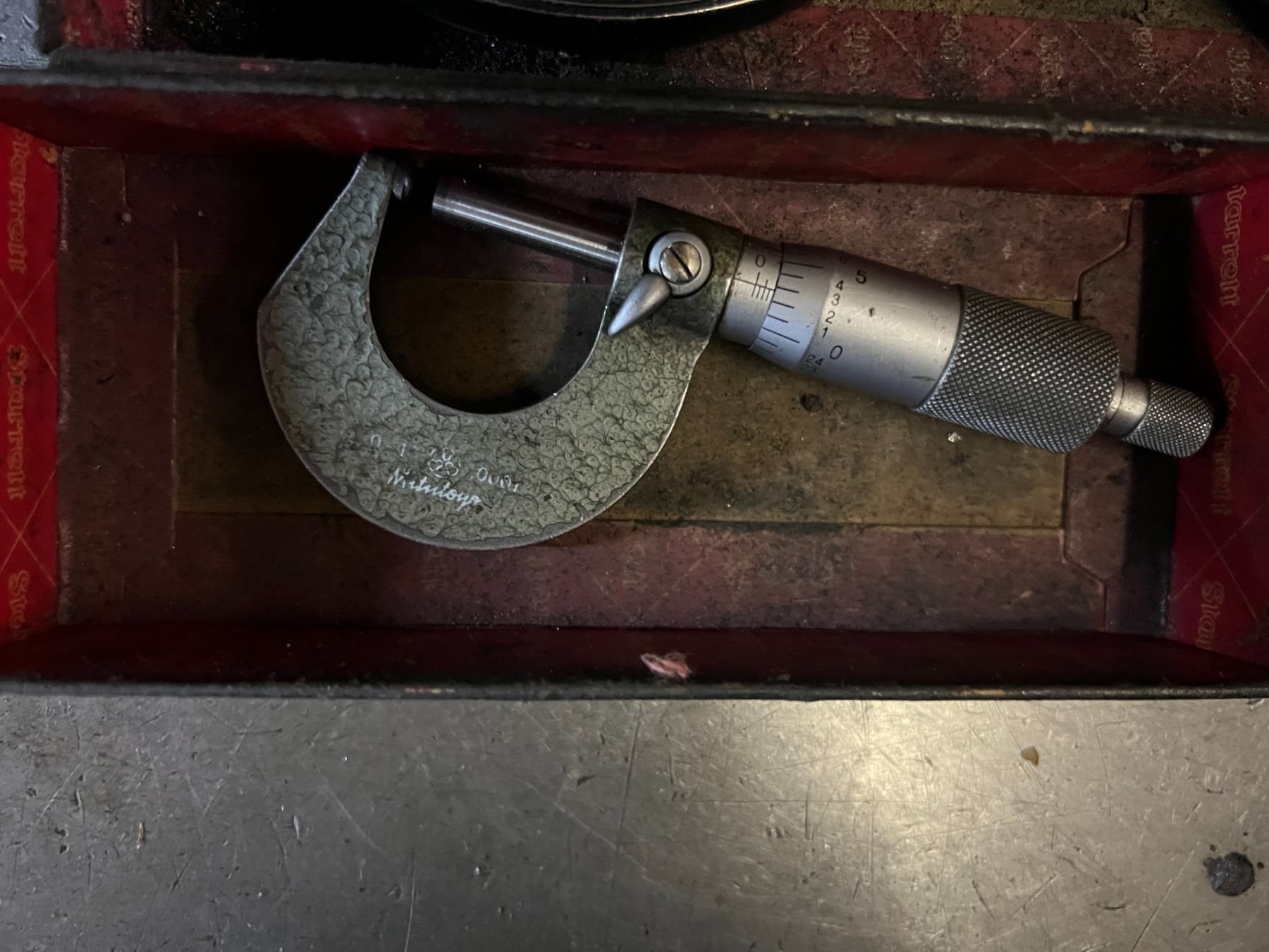 GROUP OF SPECIALTY MICROMETERS. BEARING MICROMETER, INSIDE MICROMETER (2"-5"), DEPTH MICROMETER 0-1 SMALL HOLE GAUGES (BALL MIC) 5MM-13MM OR 1/8-1/2"