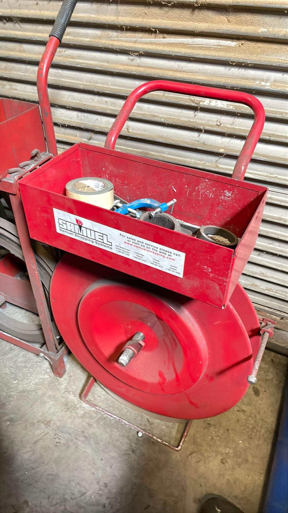 GROUP OF TWO METAL BANDING CARTS WITH SOME MATERIAL ONE CRIMP TOOL INCLUDED