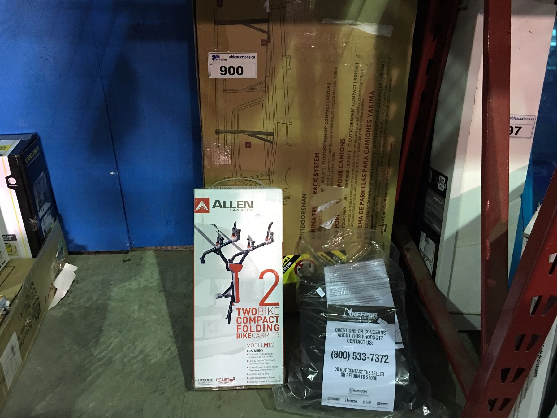 GROUP OF VEHICLE RACKS - TRUCK RACK SYSTEM , 2 BIKE COMPACT FOLDING CARRIER & A KEEPER CARGO BAG