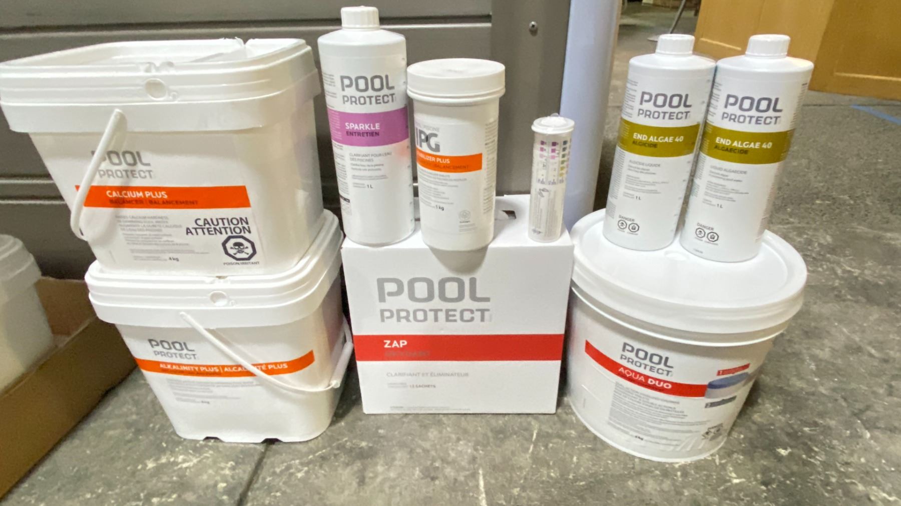 GROUP POOL/HOT TUB CHEMICAL LOT. ZAP, AQUA DUO DUAL ACTION CHLORINE PUCKS, SPARKLE, 2X END ALGAE, CALCIUM PLUS, ALKALINITY PLUS, STABILIZER PLUS, TEST STRIPS