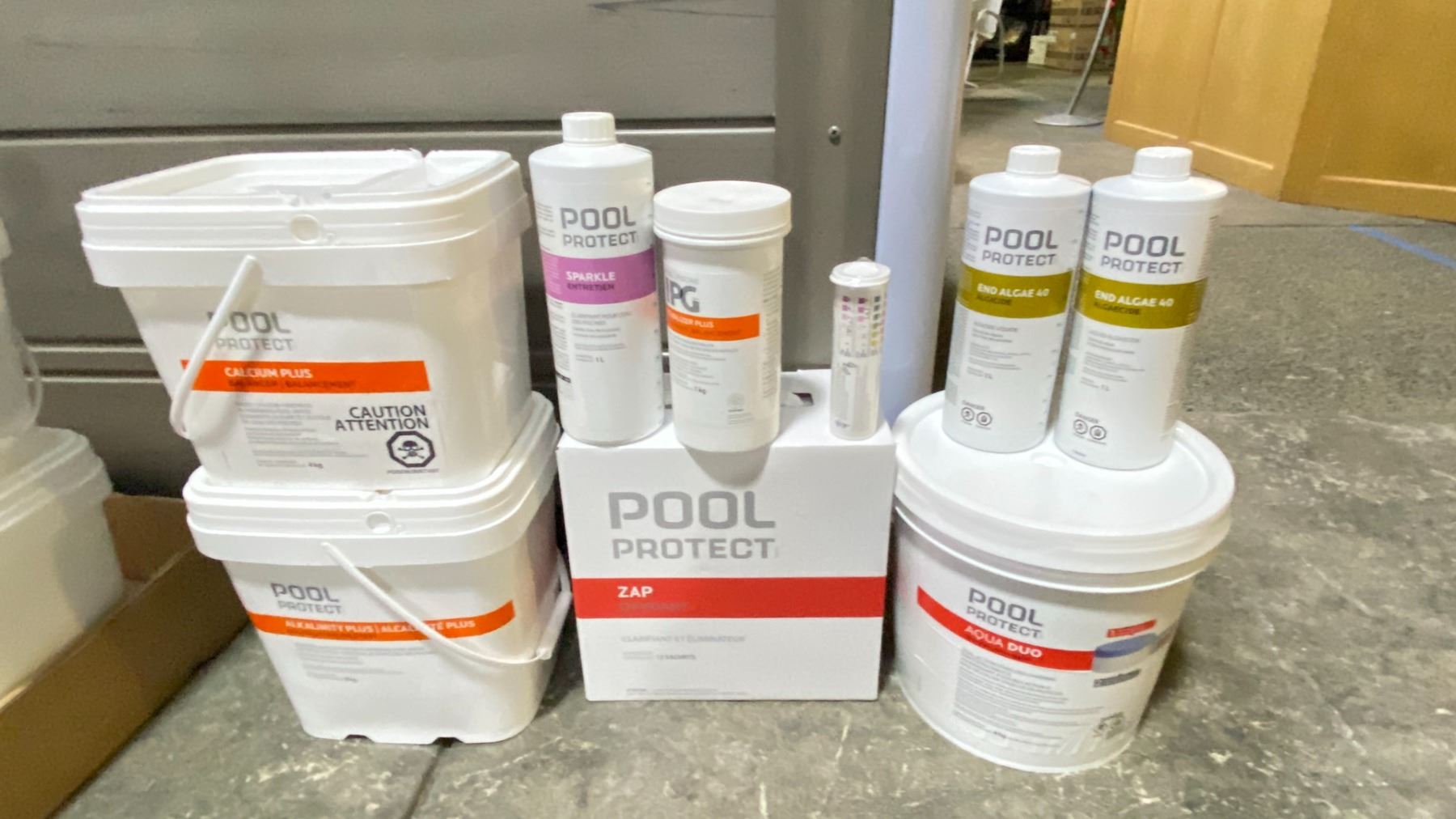 GROUP POOL/HOT TUB CHEMICAL LOT. ZAP, AQUA DUO DUAL ACTION CHLORINE PUCKS, SPARKLE, 2X END ALGAE, CALCIUM PLUS, ALKALINITY PLUS, STABILIZER PLUS, TEST STRIPS